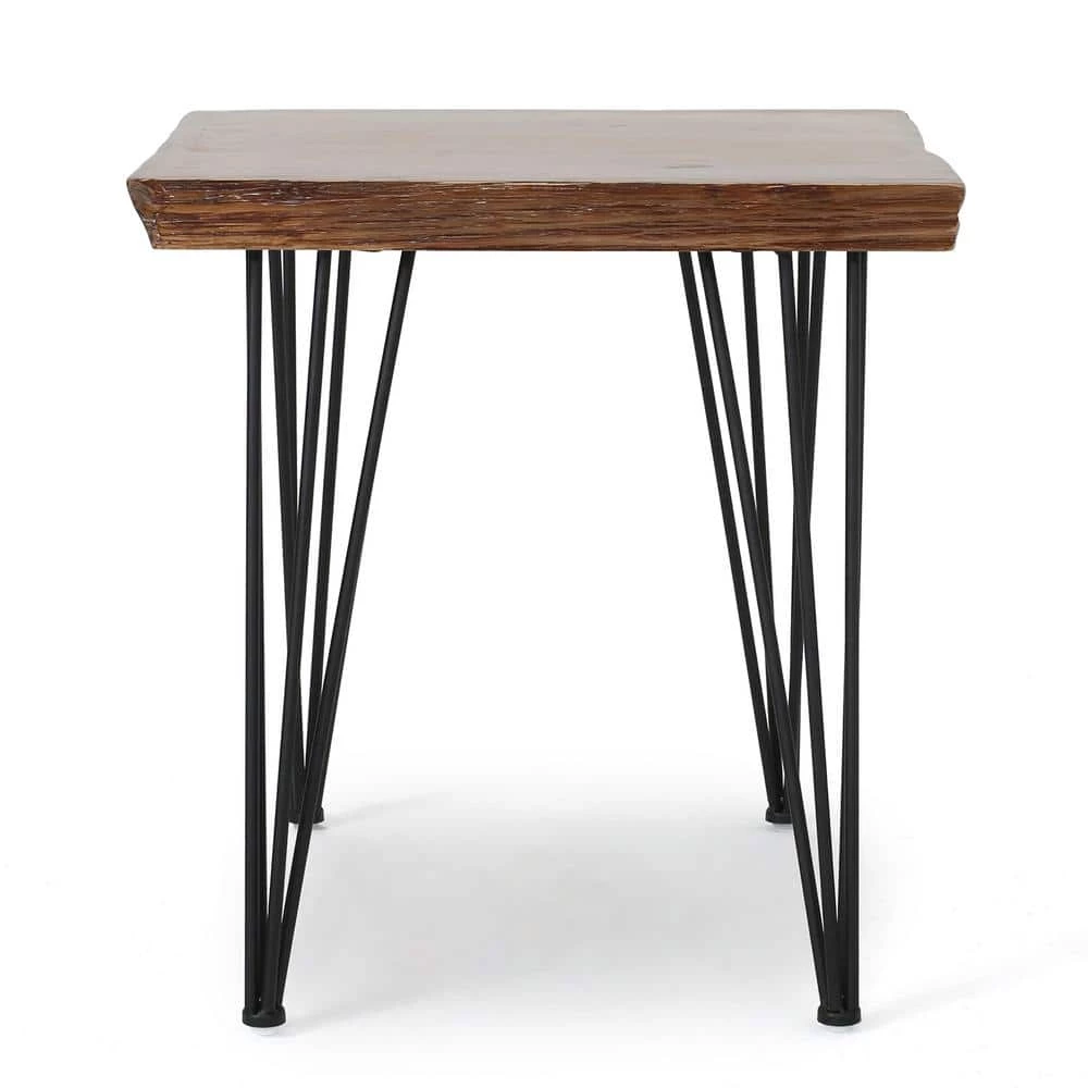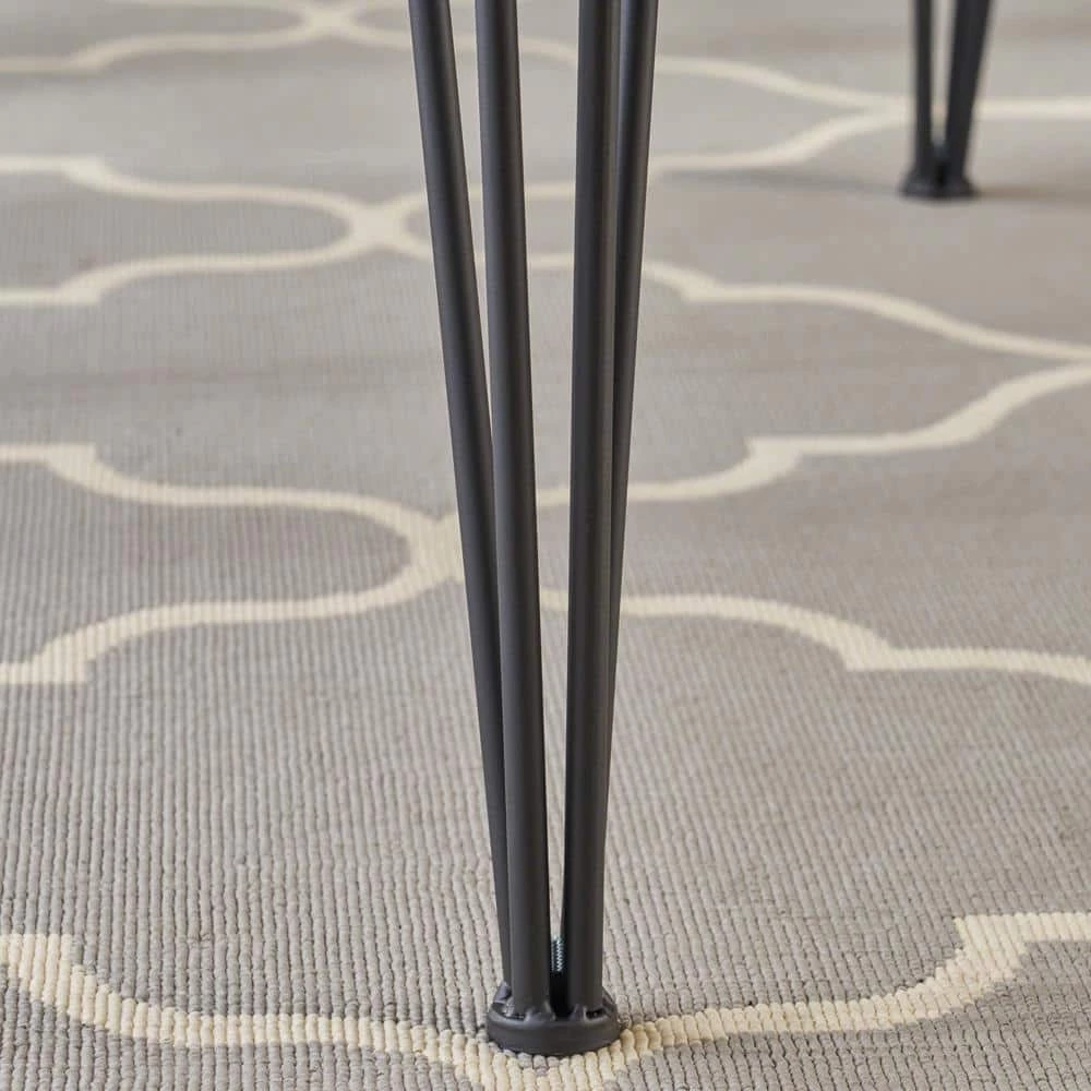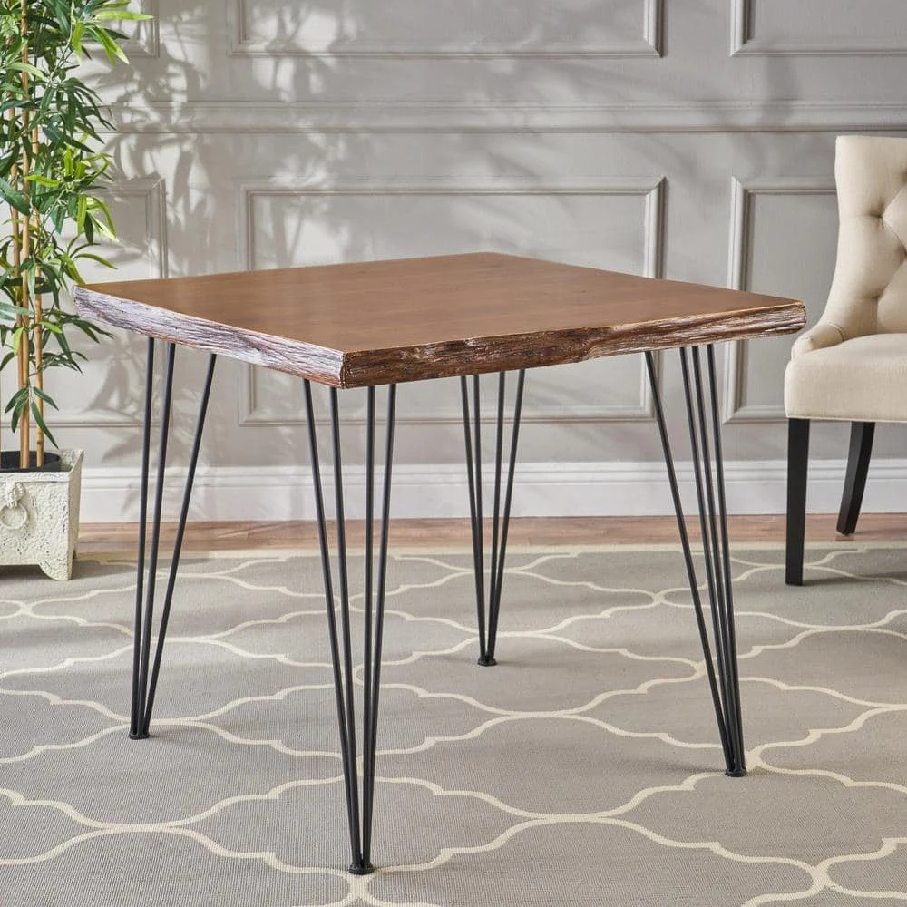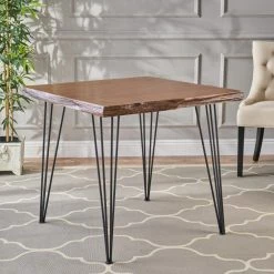 This faux live edge dining table is the perfect addition to any dining space or kitchen. Featuring hairpin legs along with a fir veneer tabletop, this piece is ideal for spaces craving a modern industrial look. The neutral colors of this dining table will easily match any type of decor you currently have.
