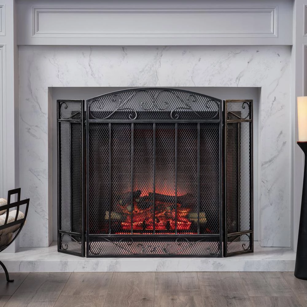 Enjoy the warmth of your fireplace on a cold evening with the help of our charming fire screen. This fireplace screen offers a sleek accent to your living room or bedroom while providing protection from hot embers or flying sparks with its fine mesh screen. This three-panel screen is foldable, making this extremely convenient to use. Featuring precise, straight lines that are contrasted by a gently curved top and a simple floral trim which highlights both functionality and style to give your home the best of the best.