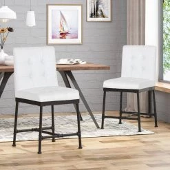 Furnish the open space of your kitchen or dining area with a raw, unfinished look that emphasizes the chic style of your home. This industrial modern piece offers a thoughtfully designed structure from its metal pipeline base to its button tufted seating. The signature piped look is created from iron, providing highly reliable durability and a timeless look. Finished with seating in neutral colors, this counter stool perfectly blends a vintage look with a touch of modern, creating a masterpiece for any decor.