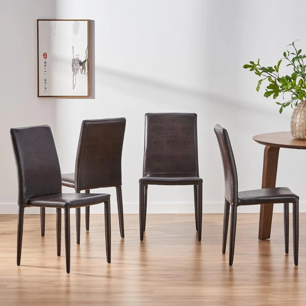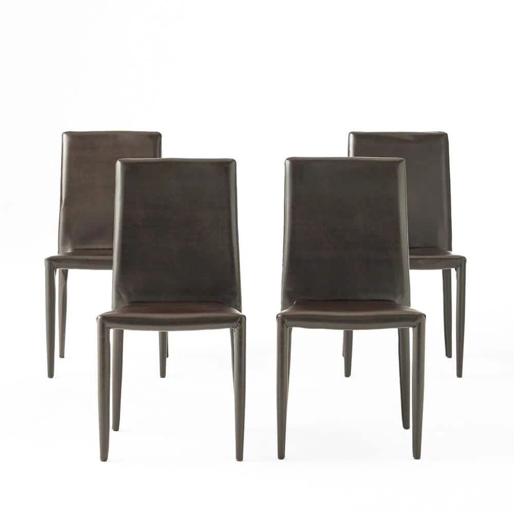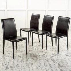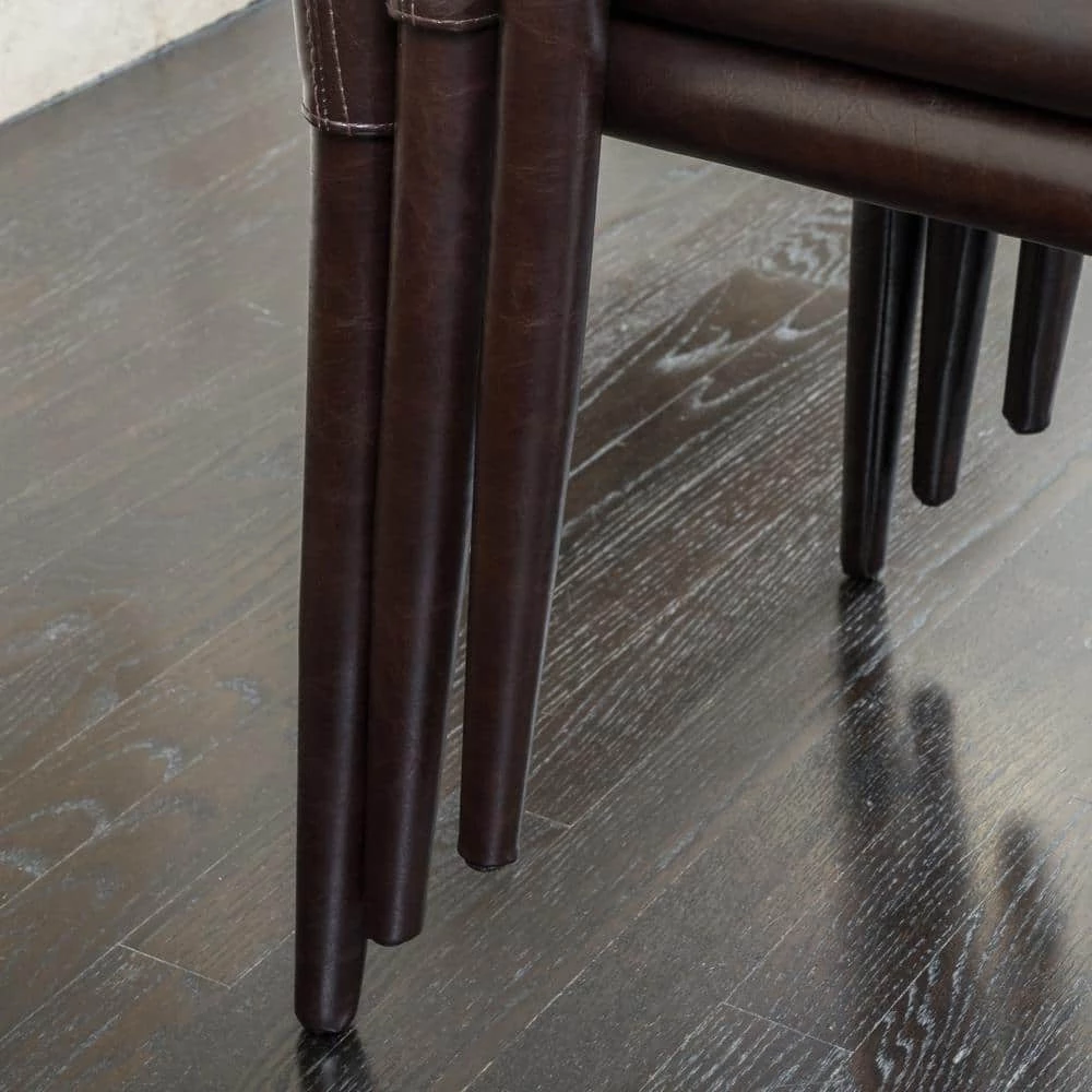 The Comstock dining chairs are the perfect solution to any space that may need some extra seats. Made with bonded leather it will add elegance to any gathering. These Stack able chairs allow you easy storage when not in use.