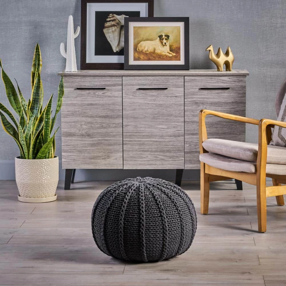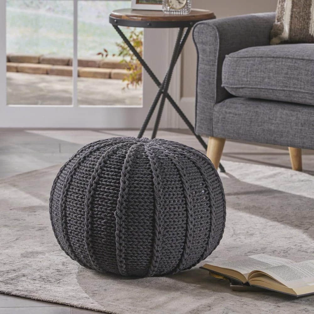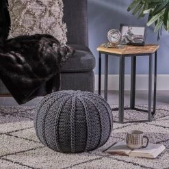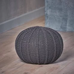 Enjoy this knitted round pouf in any room of your home. This piece is perfect for putting your feet up and can also be used as a small extra seat when company is over. Easy to store in a corner or by the bed when not in use, this pouf not only looks cute but is functional too.