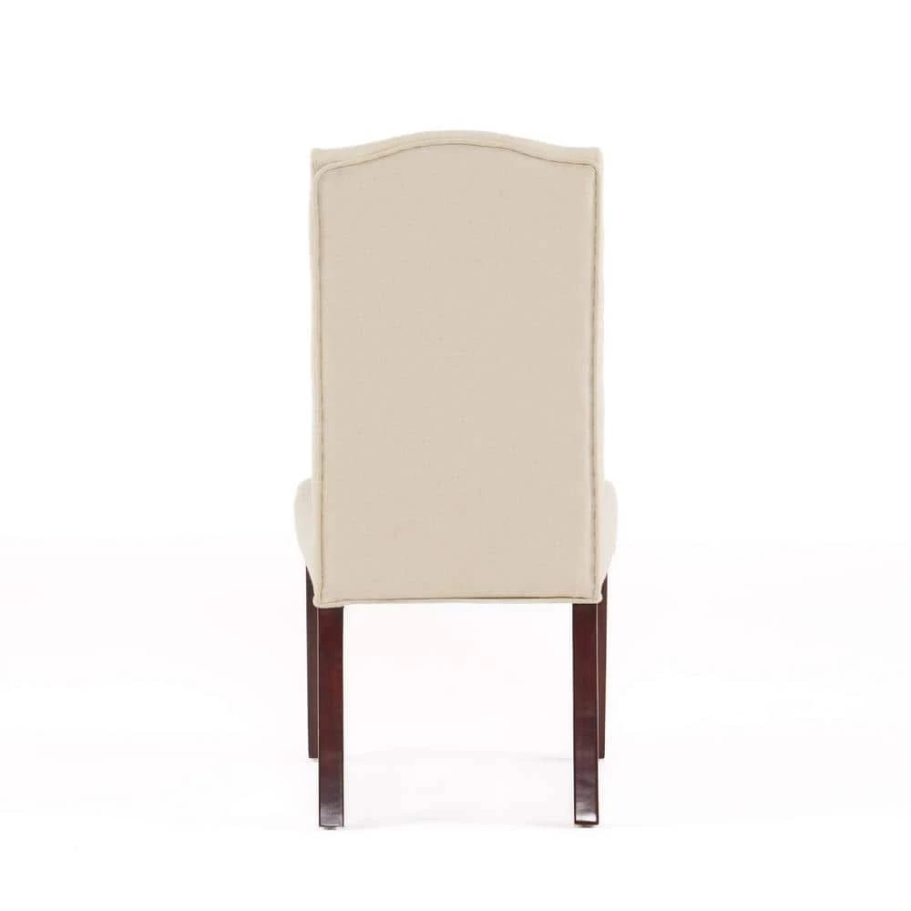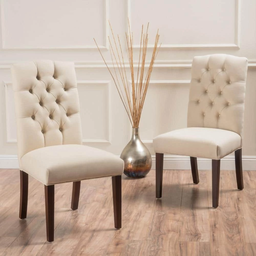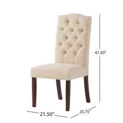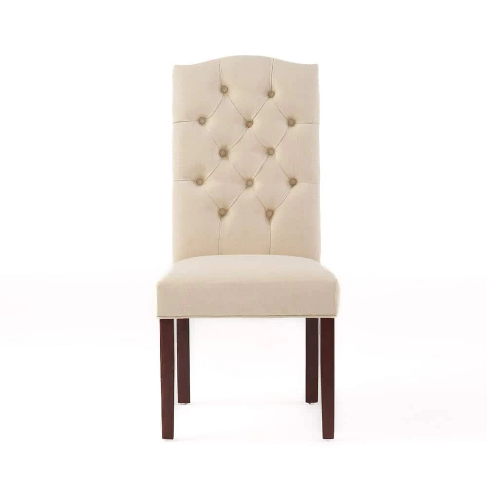 Update your dining room with these exquisite, upholstered dining chairs. With a tufted seat back and crown-shaped top, these are perfect for every manner of occasion: formal enough for a serious dinner, but relaxed enough for casual, daily use. Their neutral tones will complement almost any room, allowing you diverse options for table setting and wall decoration. Made from the highest-quality materials by trained craftspeople, these are built from durable materials to the highest specifications. These are building blocks for the dining room of your dreams. Let your inner interior decorator get to work right away.