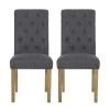 Upgrade your living room or dining room space with a splendid set of chairs that will instantly transform your decor. With an elegantly rolled top, these dining chairs will be a beautiful contemporary addition that will add luxury to your interior space. Featuring clean, straight lines contrasted by gentle curves, these chairs offer plush upholstery with button tufting and diamond stitch accents for immaculate texture and design. Finished with complementing tapered wood legs, our chair set will bring your home to the next level of sophistication.