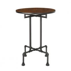 This industrial bar table is a wonderful addition to any home. Featuring piping inspired legs below a pine veneered table top, this table is the perfect way to add some industrial elements to your home. Ideal for your dining room or any room, this bar table is a must-have.