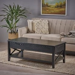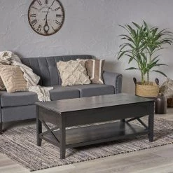Store your items away from the eyes of your guests while giving your living room a rustic centerpiece that will keep your space uncluttered. With our striking lift-top adjustable coffee table, your living room decor will never be the same. From hidden storage compartments to an open display shelf, this table has it all. Featuring a handsome farmhouse look, this table not only gives your living room a visual boost but also packs a multitude of functions within its simple design.