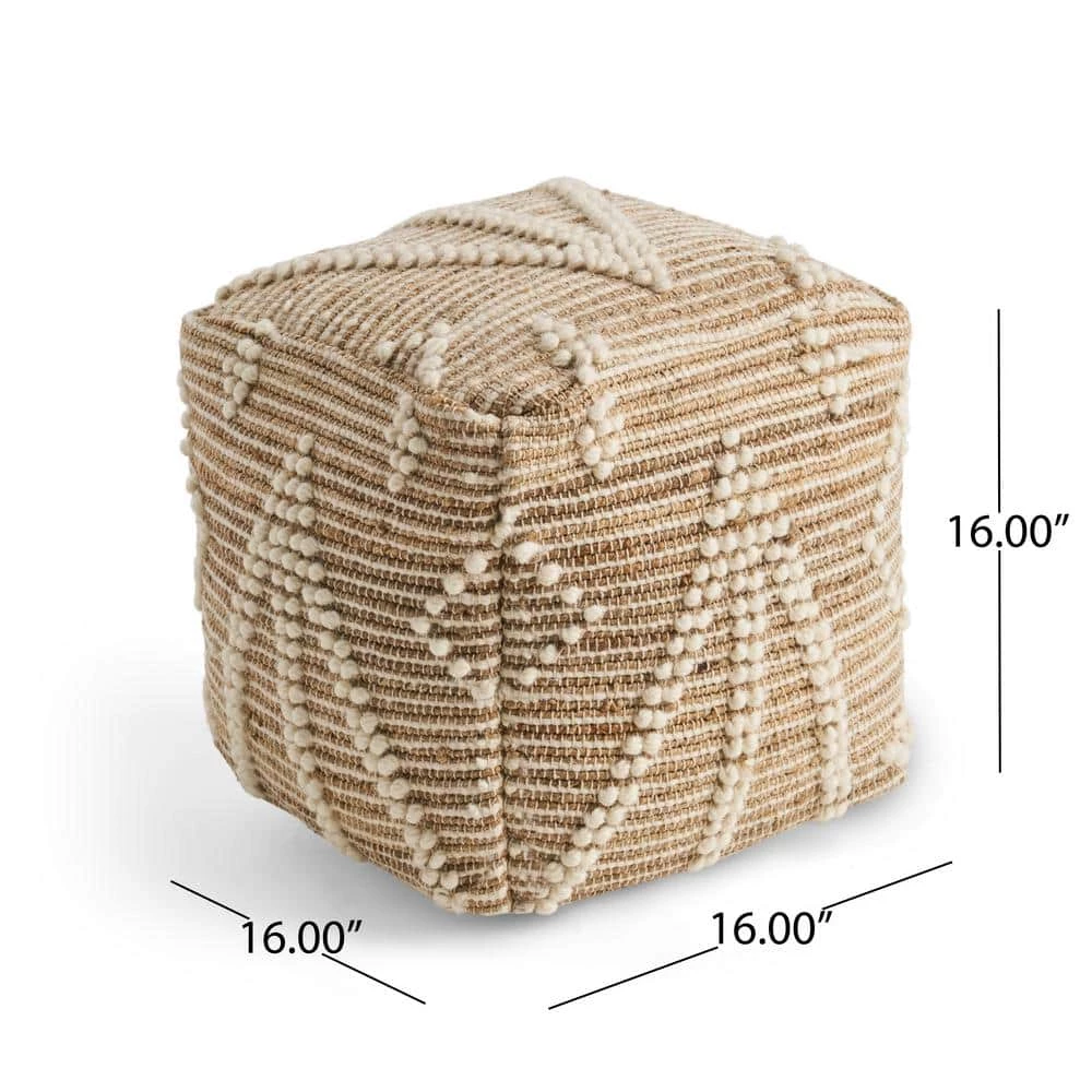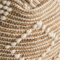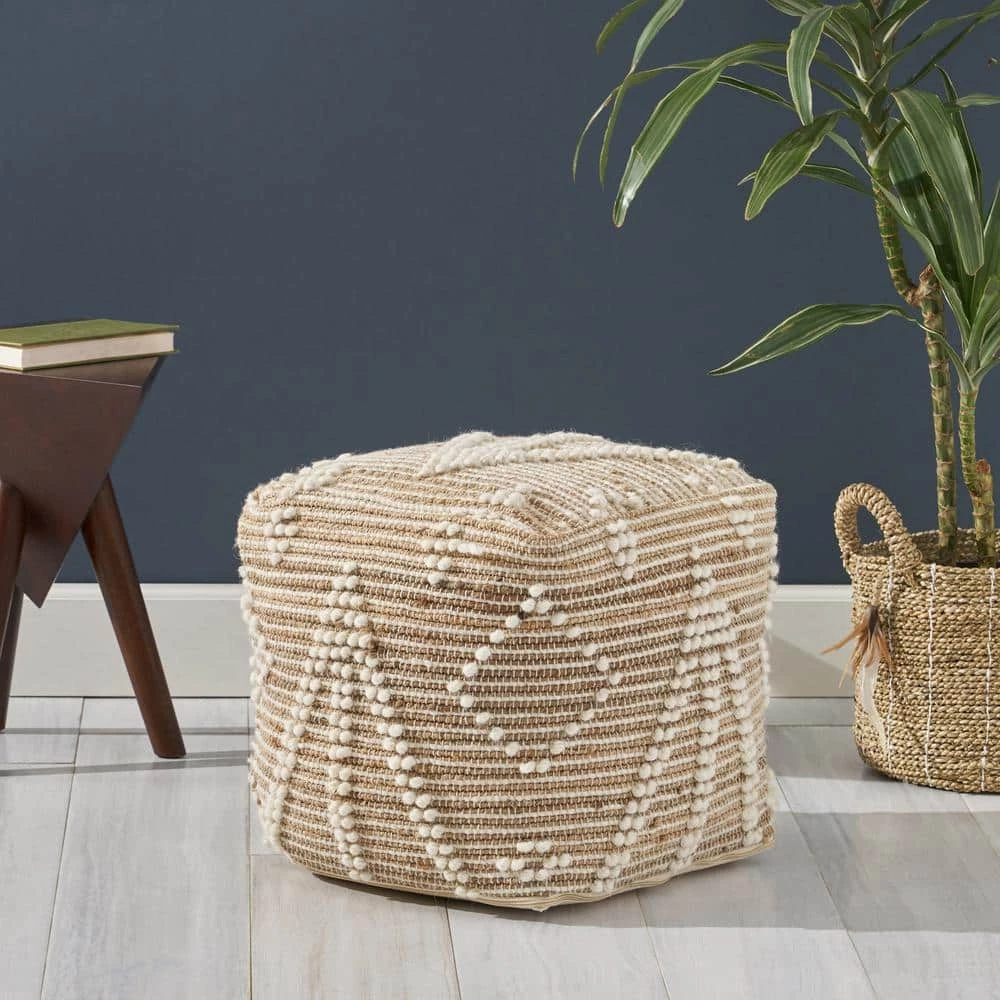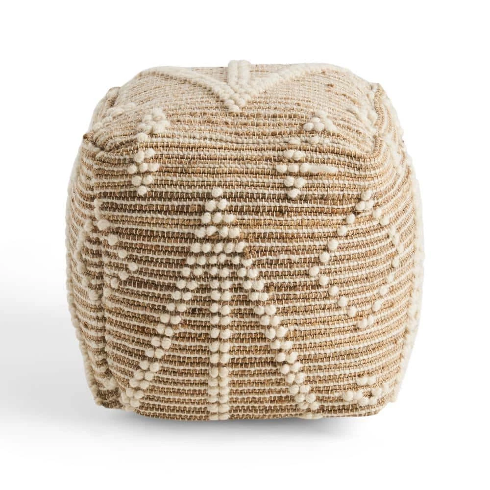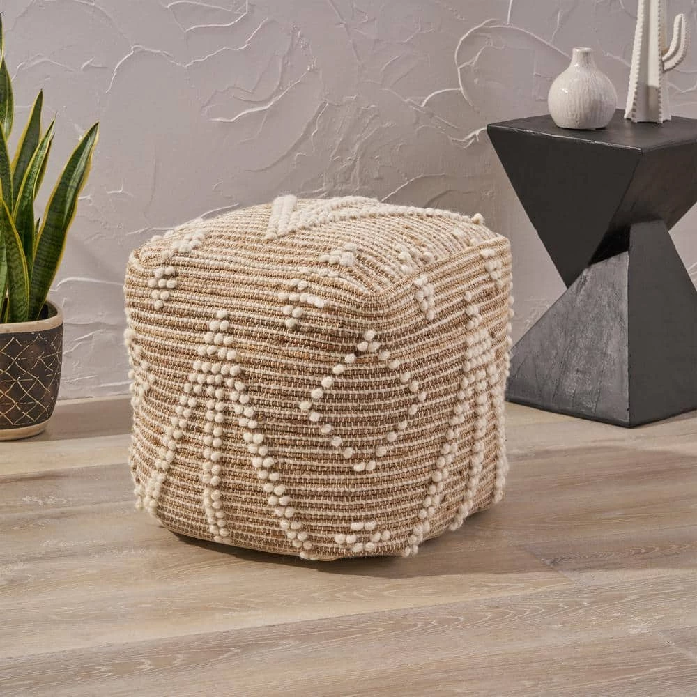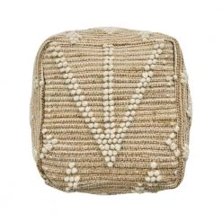 Brighten your interior space with an accessory that gives your home texture and design. Featuring a geometric tribal pattern, this pouf offers your indoor space an uplifting atmosphere with a finishing hand-crafted touch. Whether this is used as a footrest, casual seating, a side table, or purely for decorative purposes this piece can be used in a multitude of ways. Seamlessly blending into any arrangement with its understated design, this pouf is not only one-of-a-kind but is also resilient, making this the perfect indoor accessory.