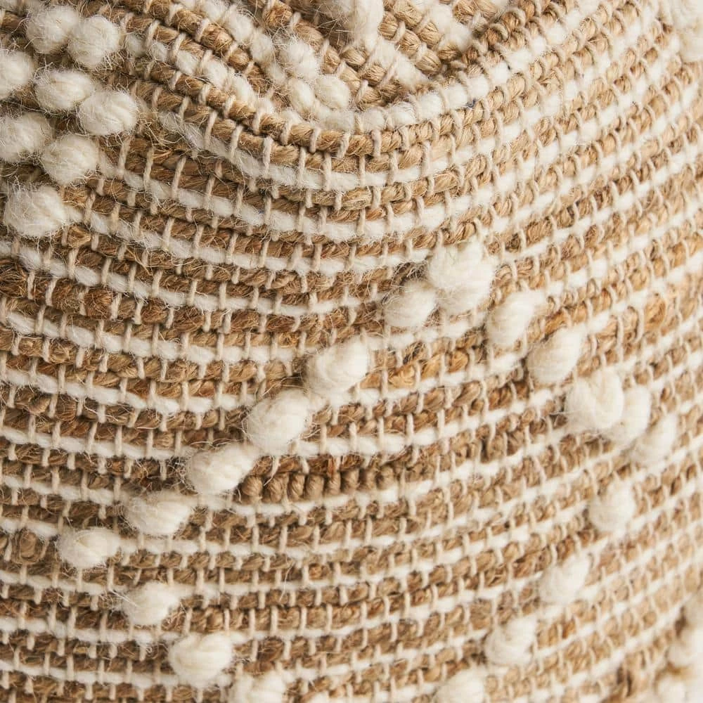 - Material: jute, wool, and cotton composition: 51% jute, 26% wool, and 23% cotton filling material: polystyrene beads