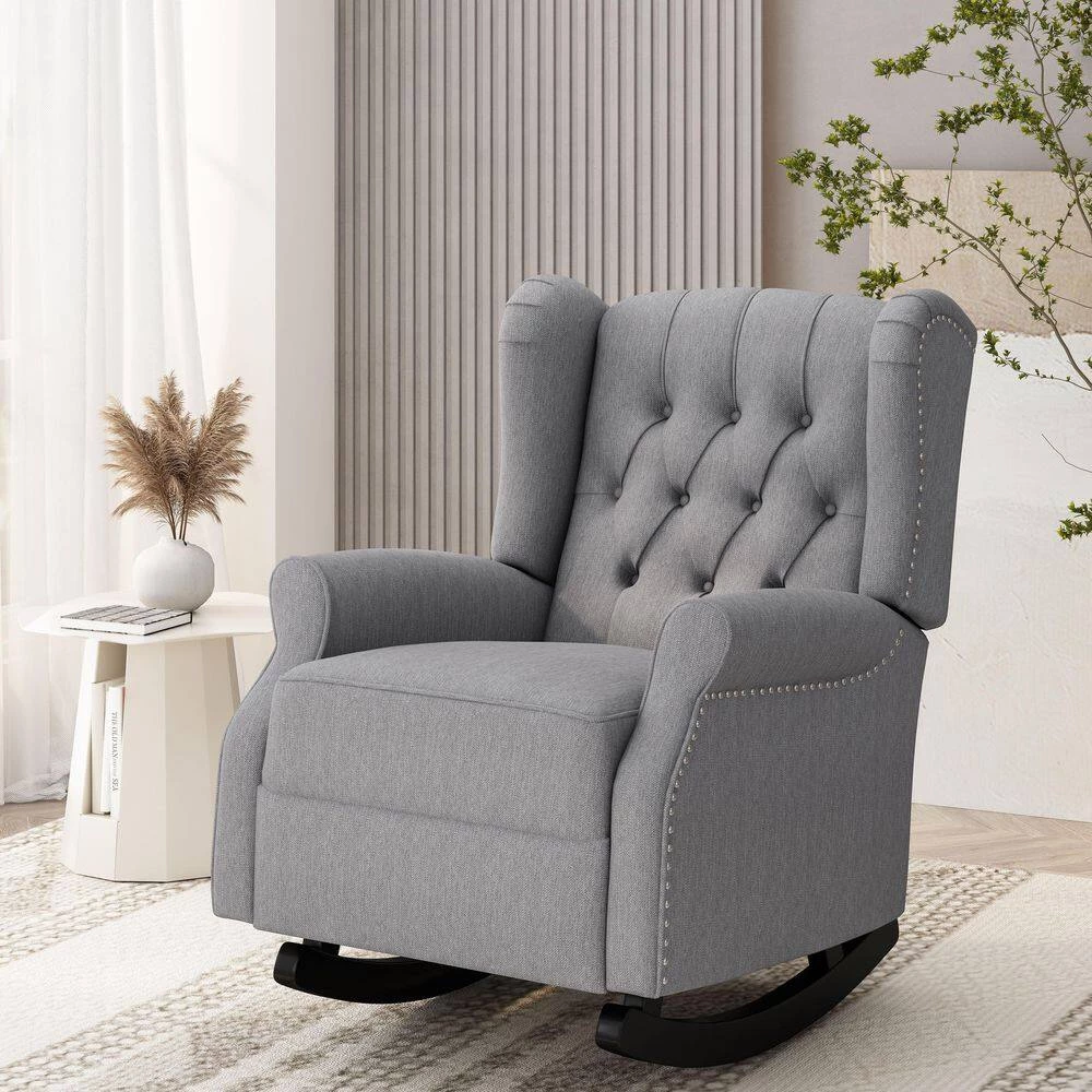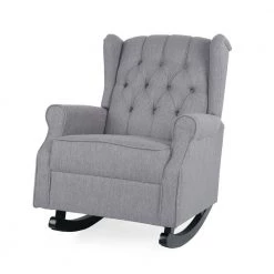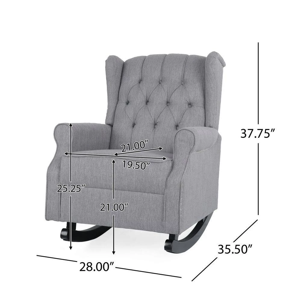 Combine practicality with a sense of style and you get the perfect seating for your interior space. Our rocking chair offers your interior space a place of ultimate leisure with deep soothing rocking motions and a cozy wingback design. Its sophisticated contemporary atmosphere illuminates even the dullest and drab living room or bedroom with a delightfully classic touch. Featuring gorgeous birch wood rockers, elegantly rolled arms, and button-tufted diamond stitching, our rocking chair brings both incredible comfort and an intimate vibe to your home.