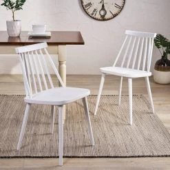 Whether you are looking for a fresh cottage feel or a breezy touch to your kitchen or dining room, this pair of dining chairs is the perfect finishing touch to any look. This farmhouse style is made for your convenience with its polypropylene construction that makes this set is extremely durable and easy to clean. Featuring traditional spindle backs for a rustic style that will impress your all your family and guests, this chair will transform the way you dine.