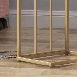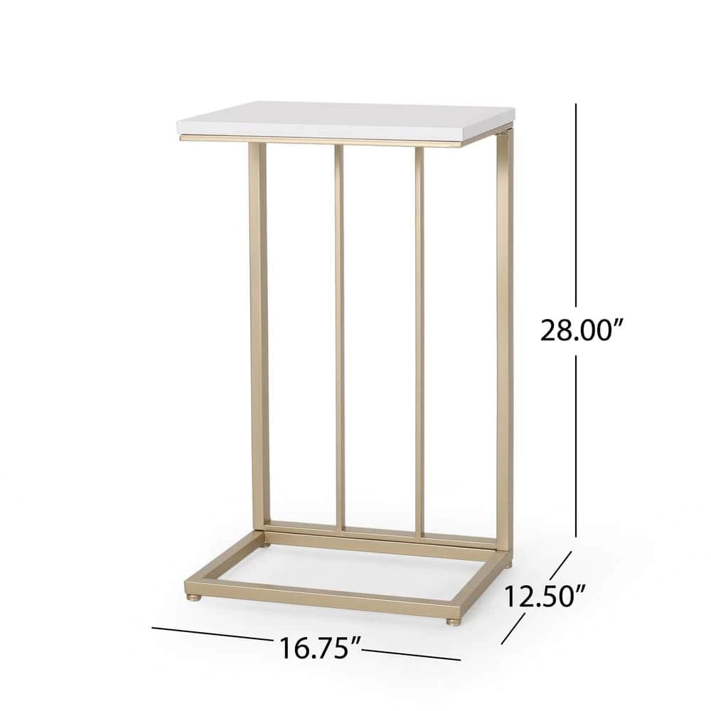 Details are what brings your interior decor to life. Furnish your space with a side table that is the perfect companion to any sofa or chair with its stunning and convenient C-shape design. Featuring a durable iron frame with a dazzling champagne gold finish, our table brings an extraordinary upscale atmosphere to any room. Whether you are using this to work on your laptop or just to hold your favorite plant, this end table will surely do it all in glamorous style.