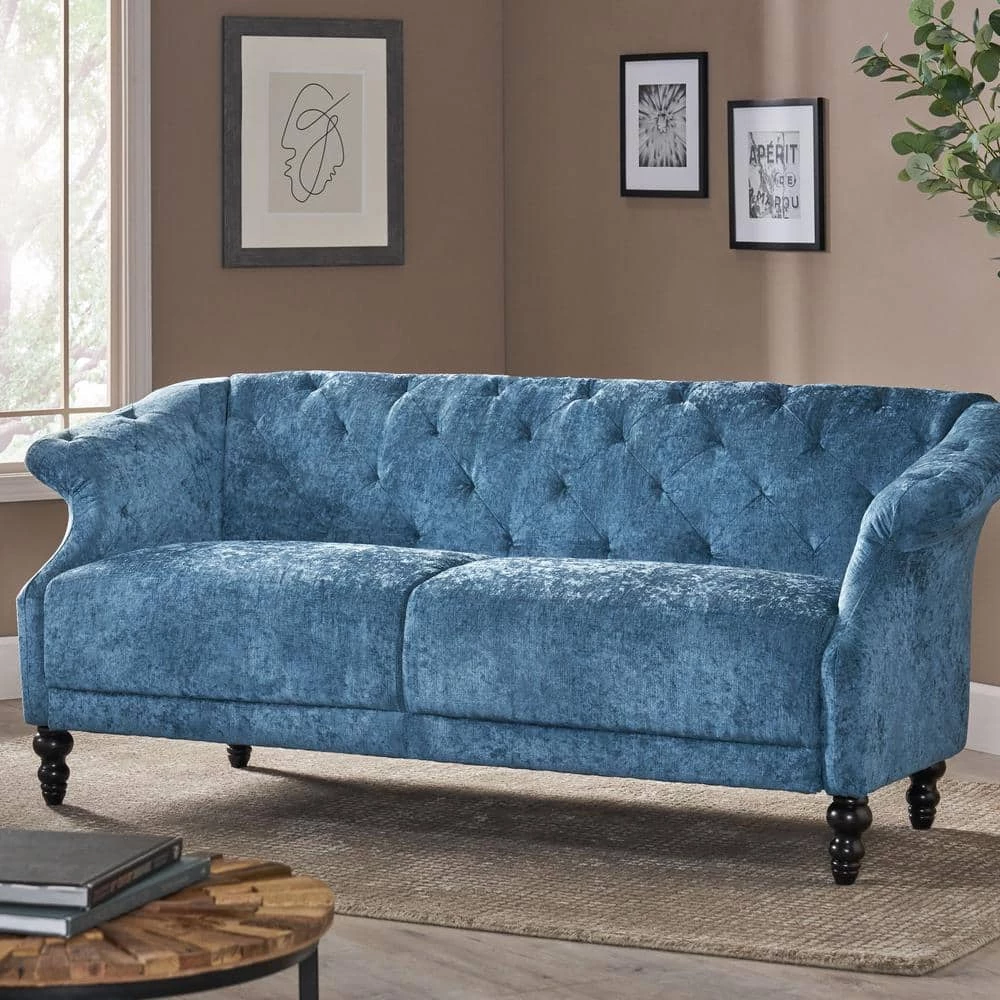 Focus your living room upon stunning textures and effortlessly eye-catching design to create the perfect centerpiece for your interior space. Featuring rounded armrests and classic button tufted diamond stitching, our sophisticated 3-seater sofa is the ideal addition for any living room. This takes a gorgeous traditional look and brings an impressive modern twist, easily anchoring your decor in an atmosphere of contemporary elegance. This sofa is finished with beautifully turned wood legs, bringing stunning style and outstanding durability to your home.