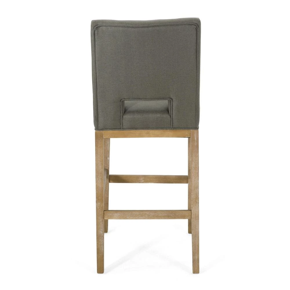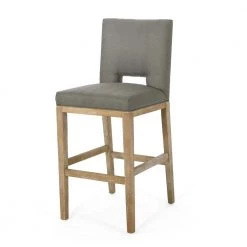 Whip up a chilled weekend cocktail and enjoy comfortable seating in your own home. Featuring a classic H-frame structure and smooth upholstery, this set of two contemporary barstools offers a delightfully refined look to any home. The frames of this impeccable set are crafted from solid wood with a weathered finish and the backrests feature an open design, giving you and your guests a stylish and sturdy place to enjoy breakfast in your nook or a cocktail with your friends.