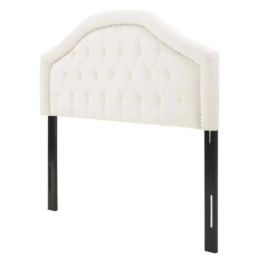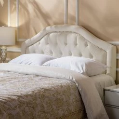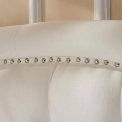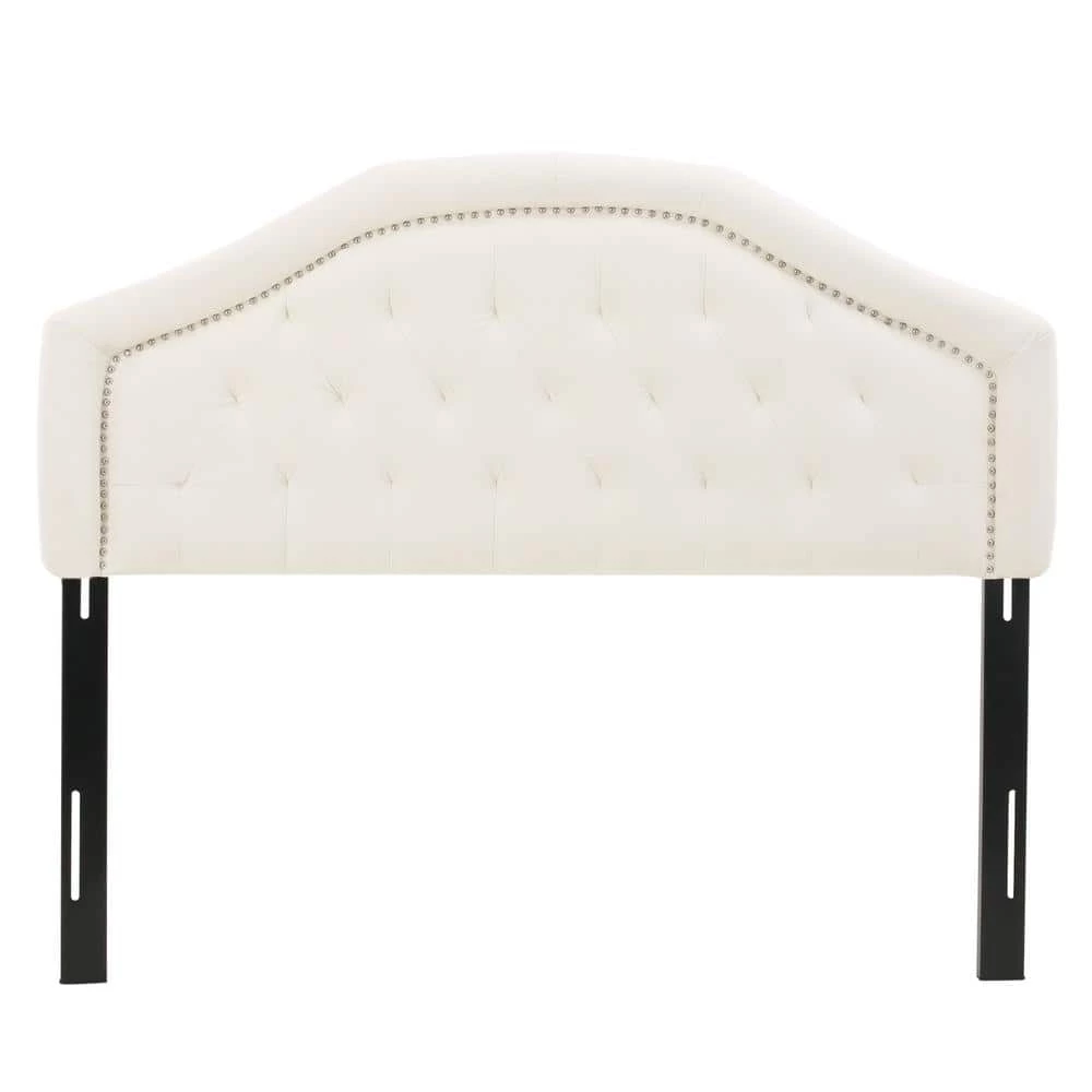 If you are looking for smooth, simple lines to help lull you to sleep, than look no further than this headboard. Featuring a studded seam, this headboard is ideal for any bedroom. Its iron legs also help insure that you can attach it to any bed frame imaginable.