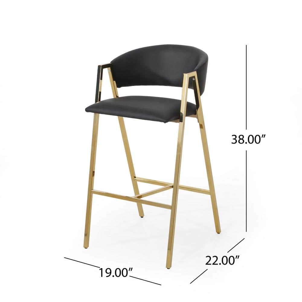 Let the morning sunshine filter in through your kitchen windows, casting a soothing glow across your breakfast nook. You can easily enjoy this picturesque scene in our set of chic bar stools with a refreshing cup of hot coffee. Featuring a refined iron leg frame with a luxurious finish, our bar stool not only brings your kitchen or bar space a gorgeous new look but also offers incredible stability. The seating features a chic black faux leather material, giving any space a sophisticated atmosphere.