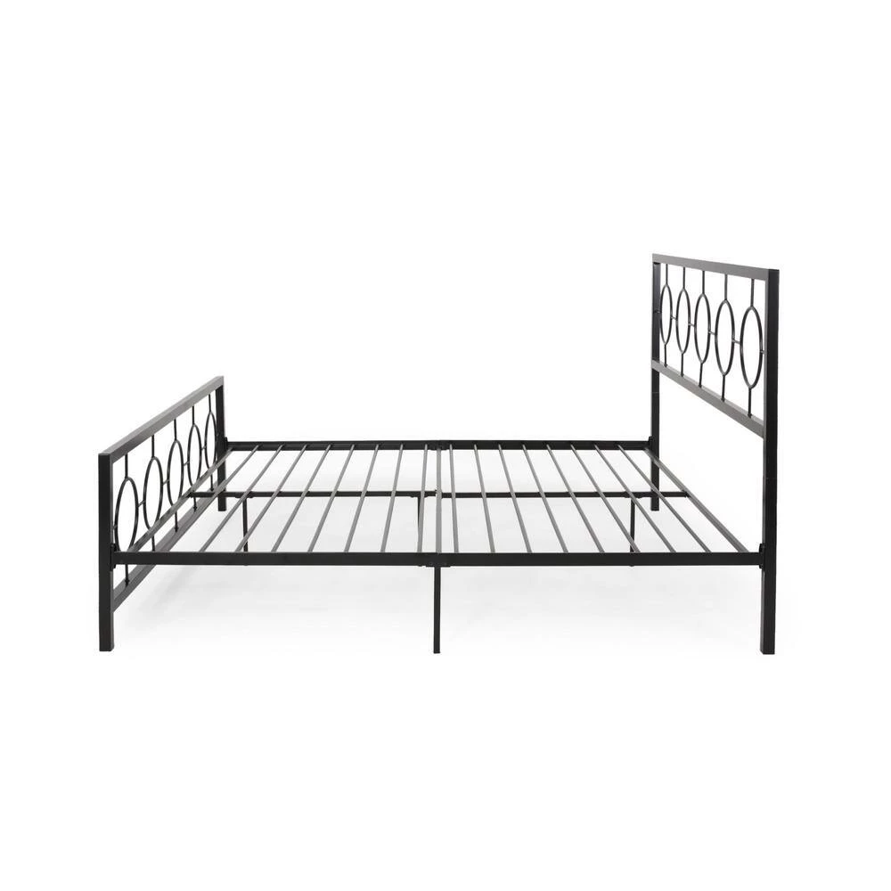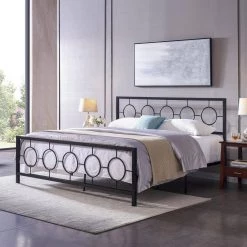 Sleeping in style has never been easier with our sleek metal bed frame. Whether you are looking to give your bedroom an upgrade or just need a place to relax, our bed frame offers a dazzling focal point for your room, featuring a minimalistic structure in neutral colors and a sturdy metal structure that showcases a charming circular pattern. With support slats that cut out the need for a box spring, this frame offers a timeless elegance for your home while providing you with maximum support.