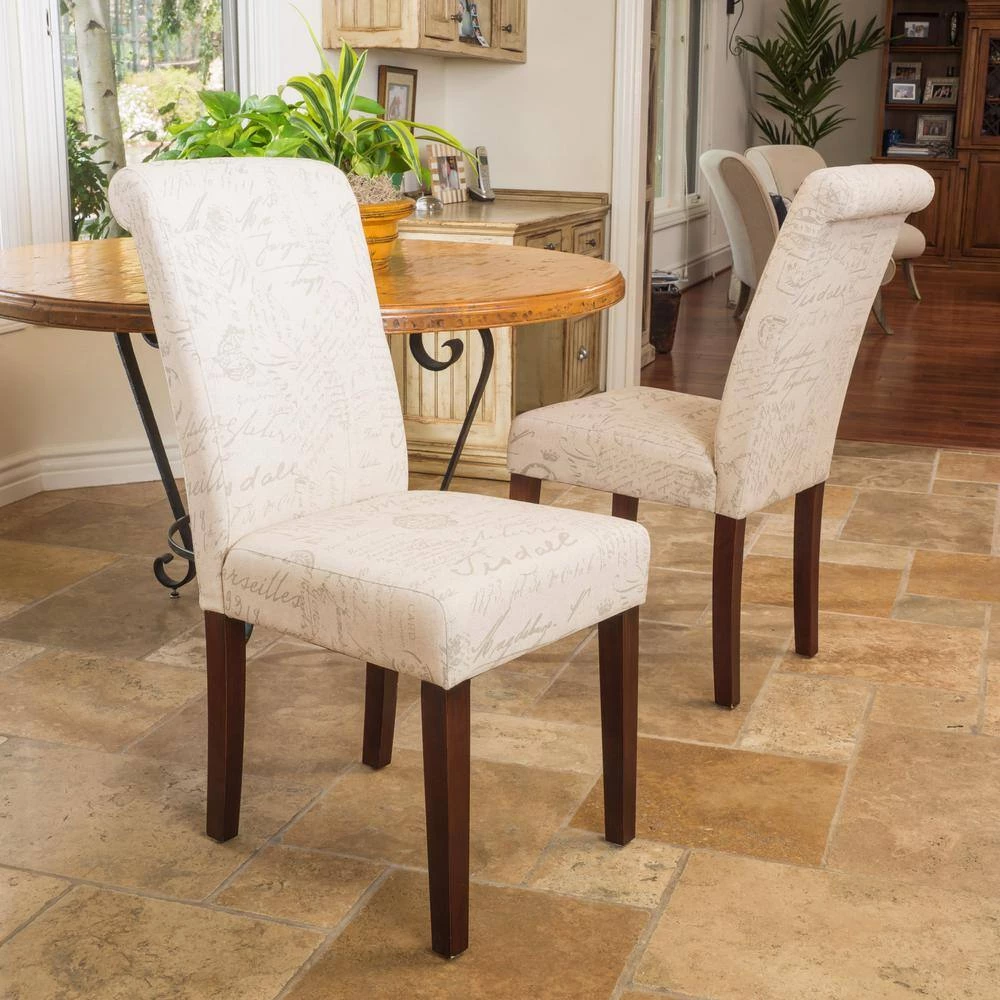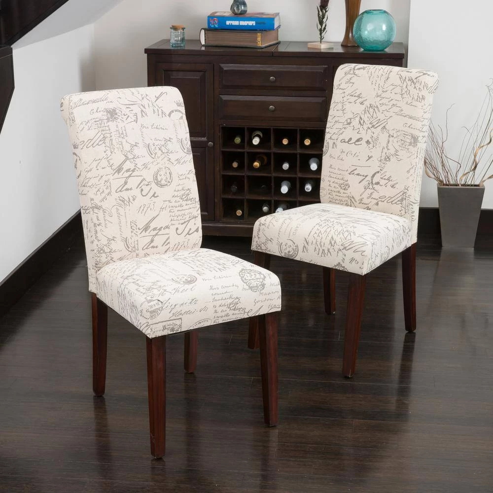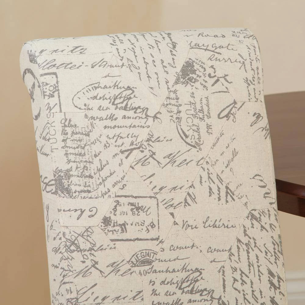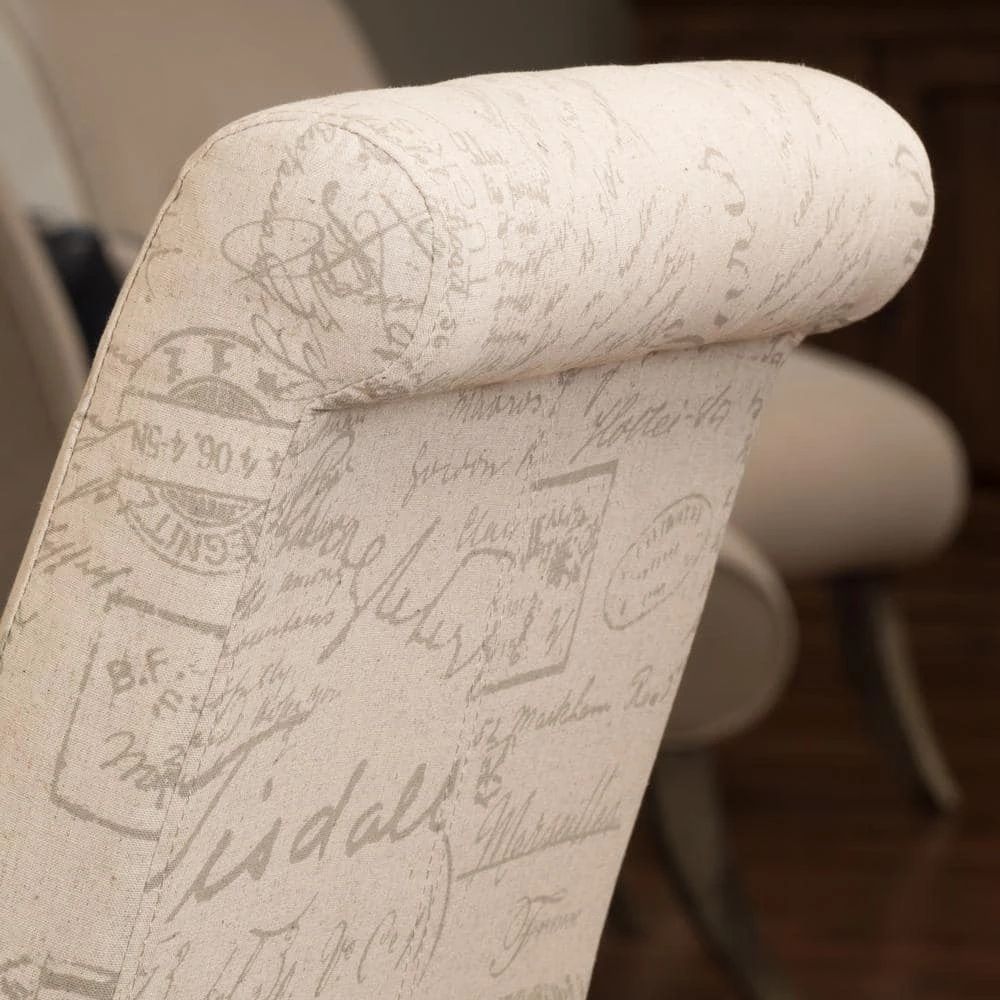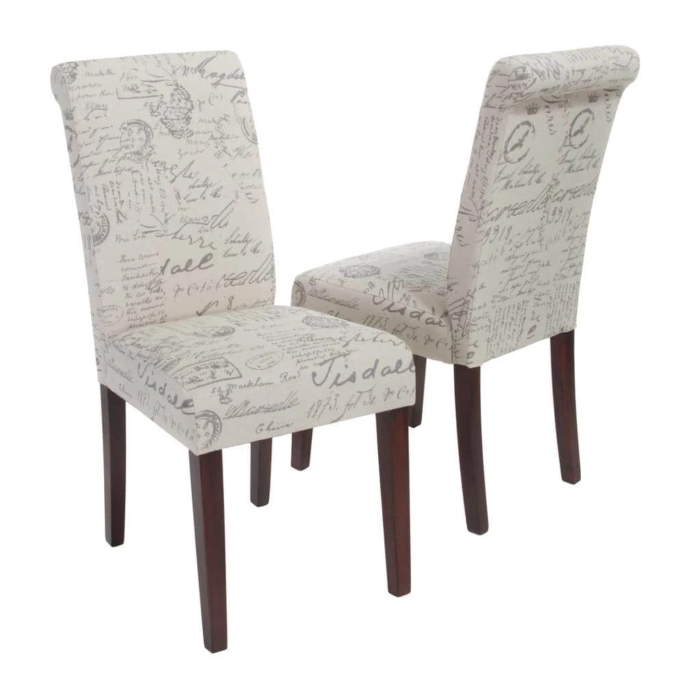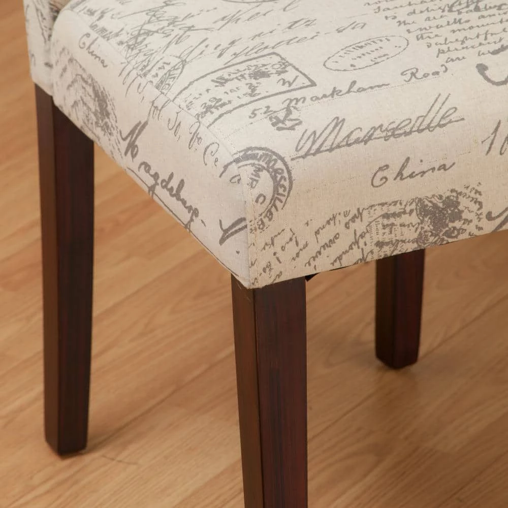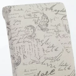 These dining chairs will add a unique flair to your dining space. Designed with French handwritten pattern over beige linen, you’ll be sure to get attention with these chairs. Built to stand up to the rigors of daily use and expertly upholstered, these chairs are destined to become a treasured addition to your home.