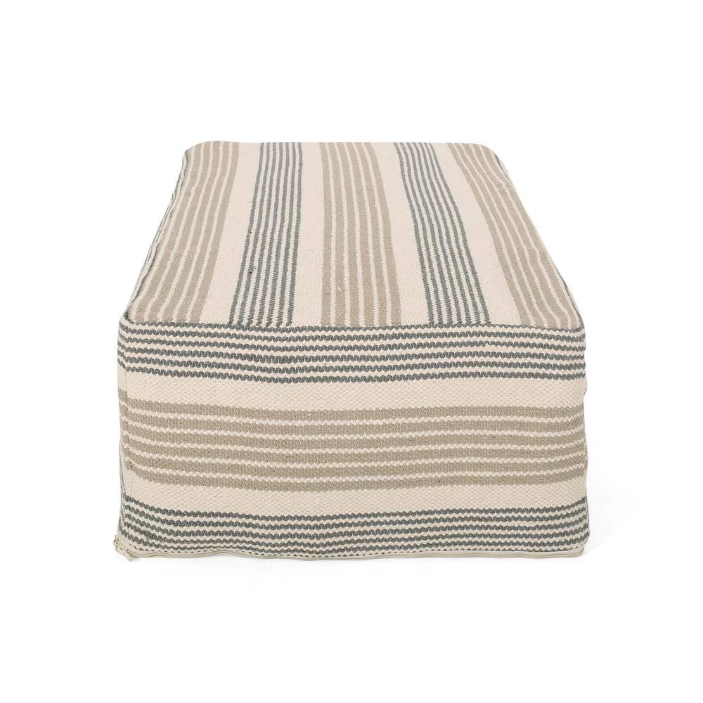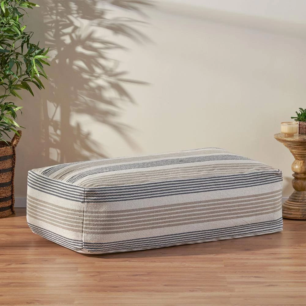 Accentuate the coziness of your home with an accessory of ultimate comfort. This pouf ottoman is delightfully versatile with its perfect proportions, letting you use it as an extra seat, a temporary table, or a relaxing footstool. Featuring a clean striped design, this pouf bench offers your indoor space an uplifting atmosphere with a finishing hand-crafted touch. Seamlessly blending into any arrangement with its understated design, this pouf ottoman is not only one-of-a-kind but is also resilient, making this the perfect indoor accessory.