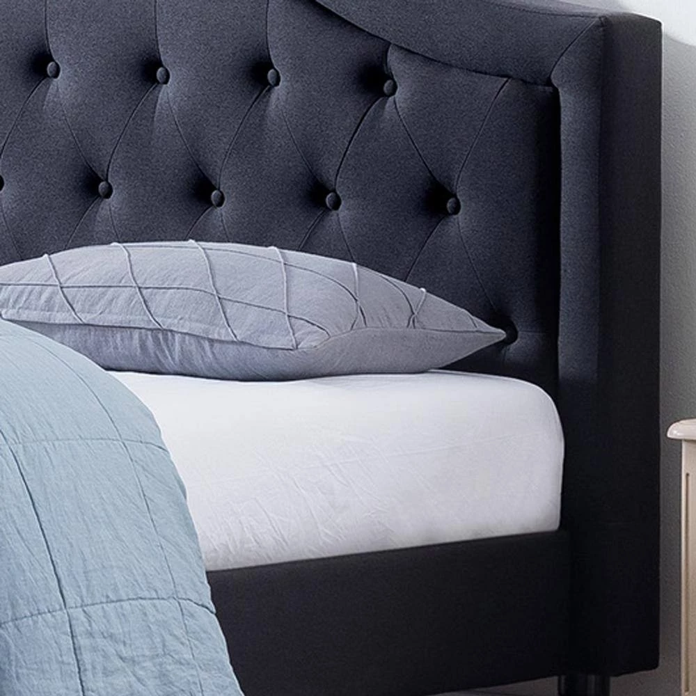 Timeless design meets minimalistic style to form a contemporary styled, fully upholstered bed frame that is worthy of the most refined looks. With multiple wood slats that cuts out the need for a box spring, this set offers a timeless elegance for your home decor while providing you maximum support. Featuring a button-tufted diamond stitch that lends a polished touch to your room, this bed set will complement your ensemble with its neutral color scheme and its subtle yet elegant silhouette.