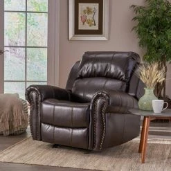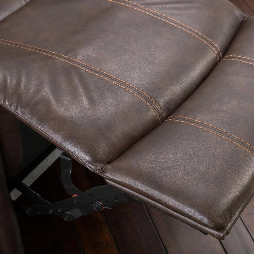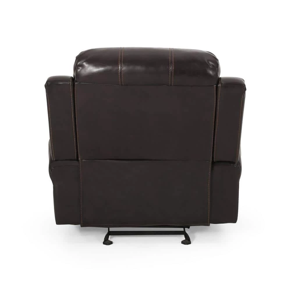 Enjoy maximum comfort with this elegant brown leather recliner. Relax on its plush wide back rest and rolled armrest. Lay back on its reclining back and extending footrest and enjoy the relaxation. Flaunting a rich brown color, this recliner is easy to match with any modern color scheme.