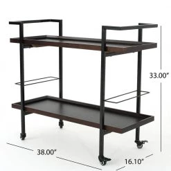 Impress your guests with this capacious and attractive bar cart. Perfect for entertaining, it can also be used to add additional space in your kitchen or dining room or even as a display shelf. The wood and iron construction makes this as sturdy and dependable as it is eye-pleasing.