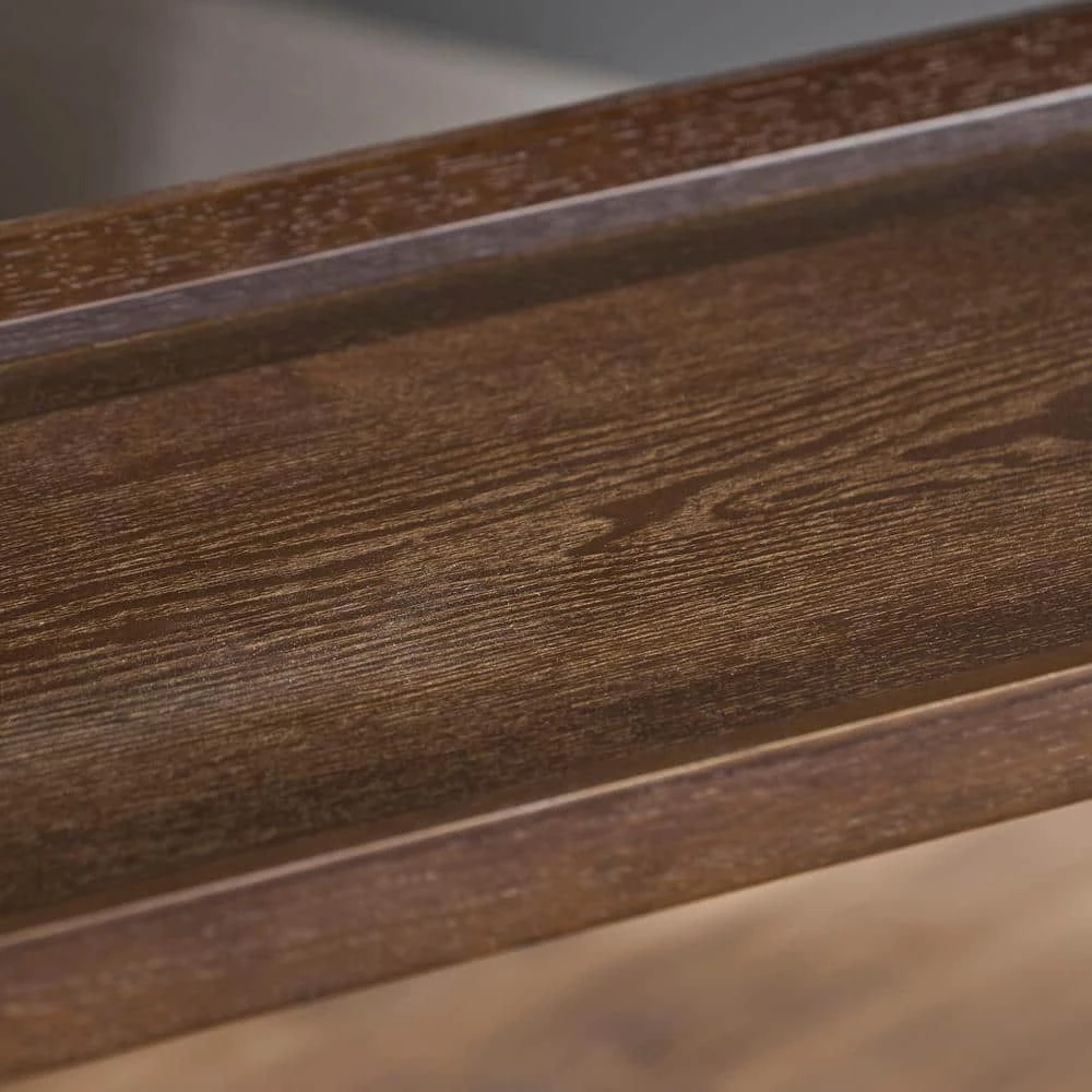 - Material: faux wood overlay with an ash veneer : accent material: iron