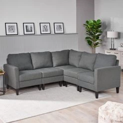 This 5-piece sectional couch is a great addition to your living room. Mix and match the included seats to create whatever shape works best for your space. This sectional features soft fabric and extra plush square cushions, to give you the best experience while relaxing in your own home. All of your friends and family will be asking you where you got such a stylish, comfortable couch so they can get one all their own.