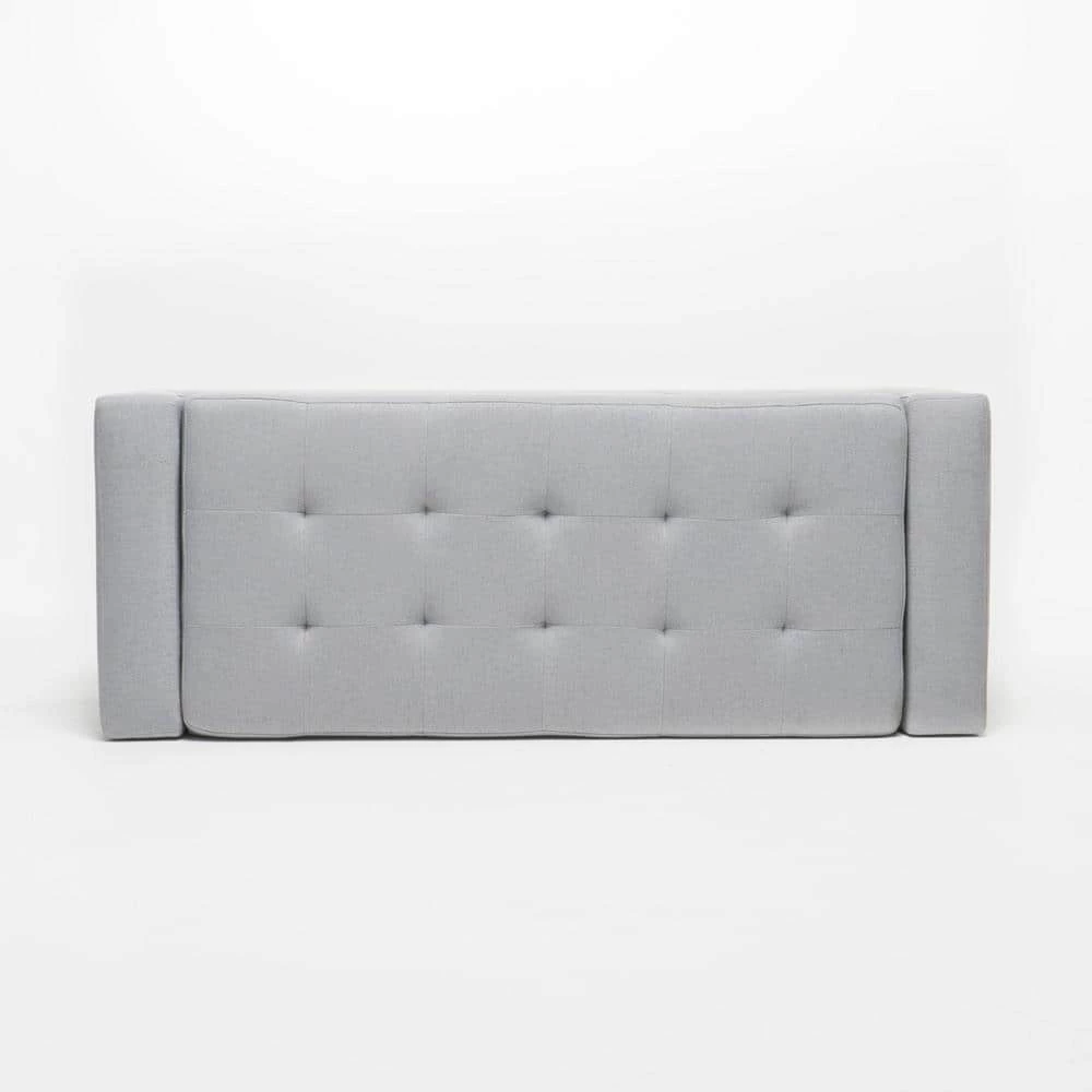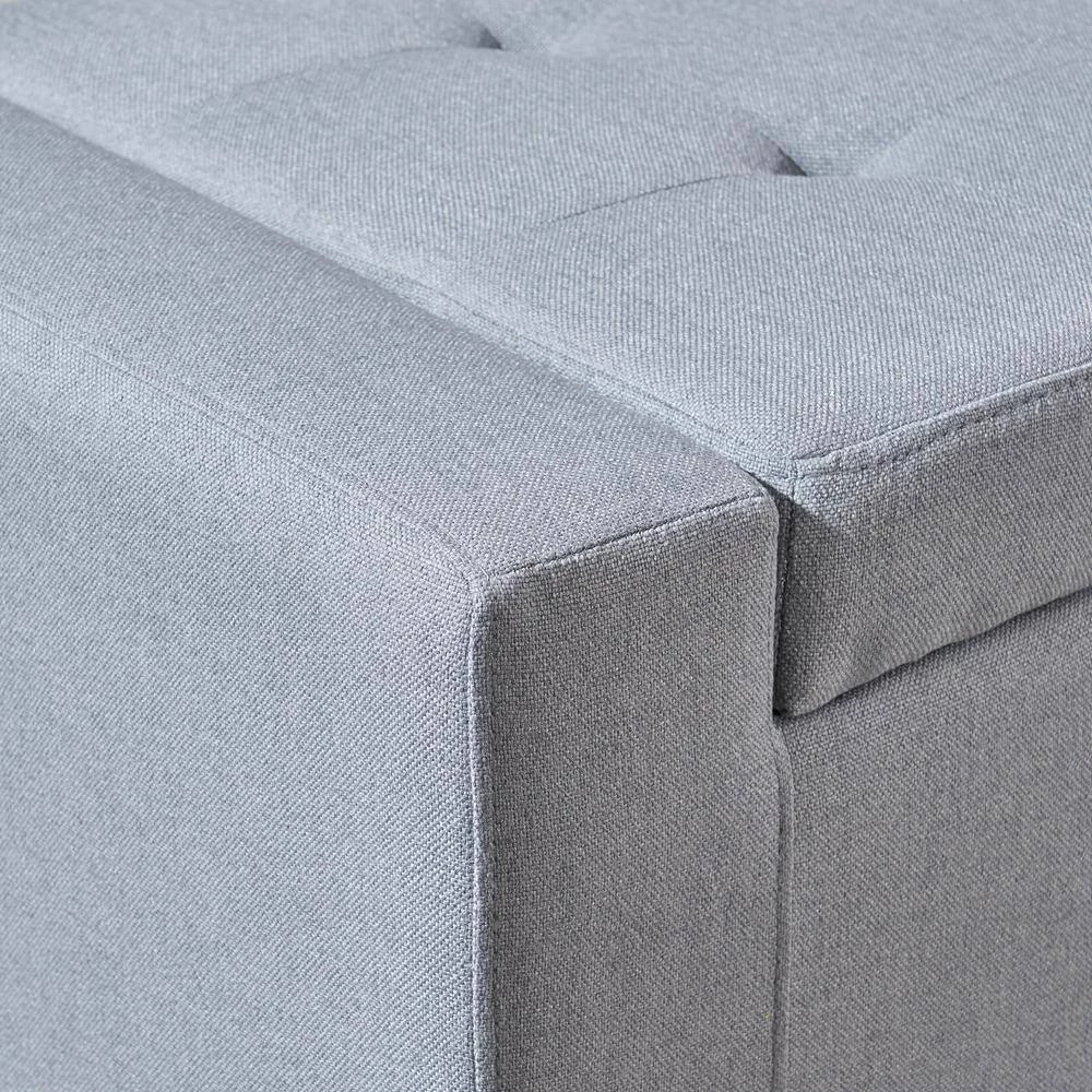 - Light gray fabric upholstery easily blends with most decor and color schemes
