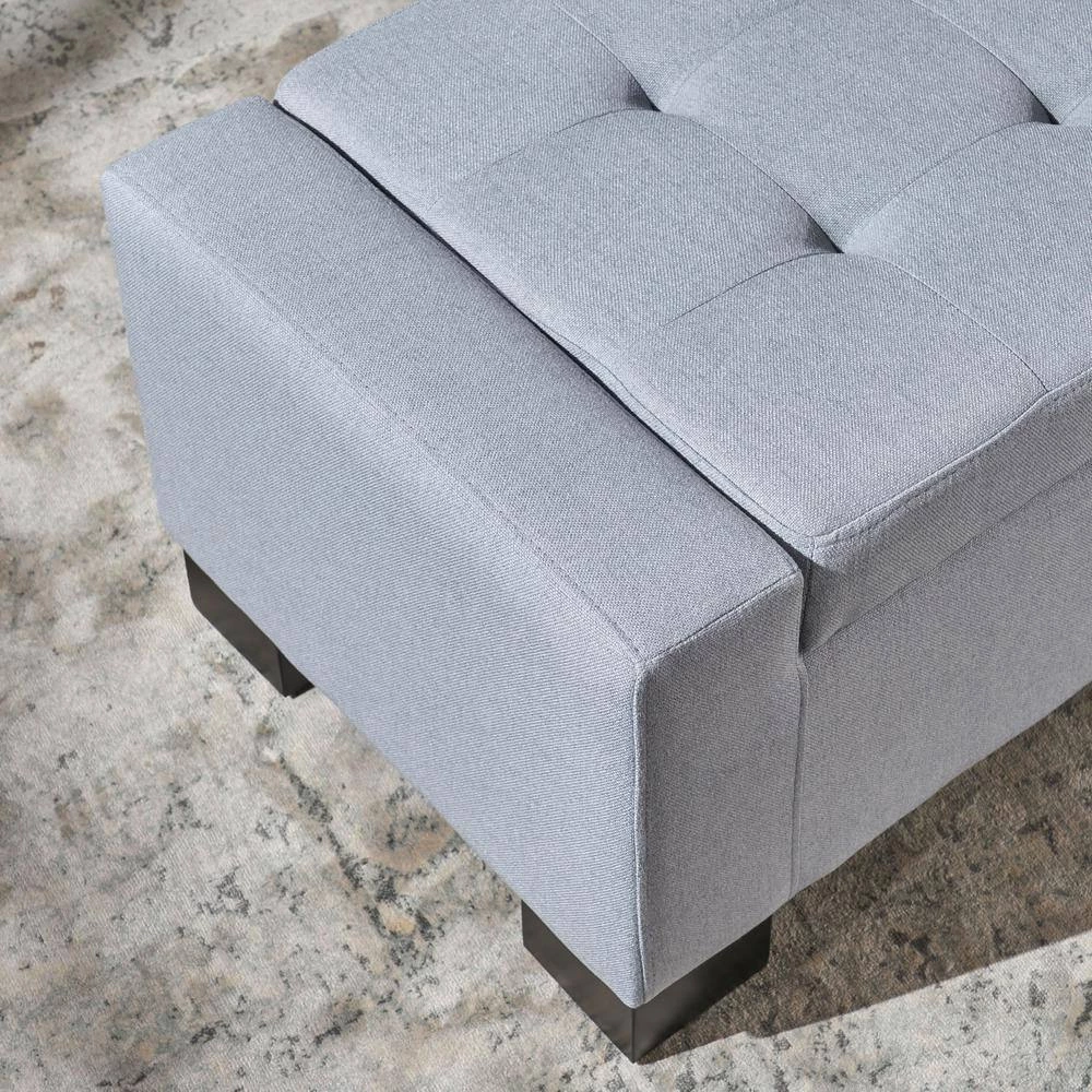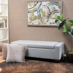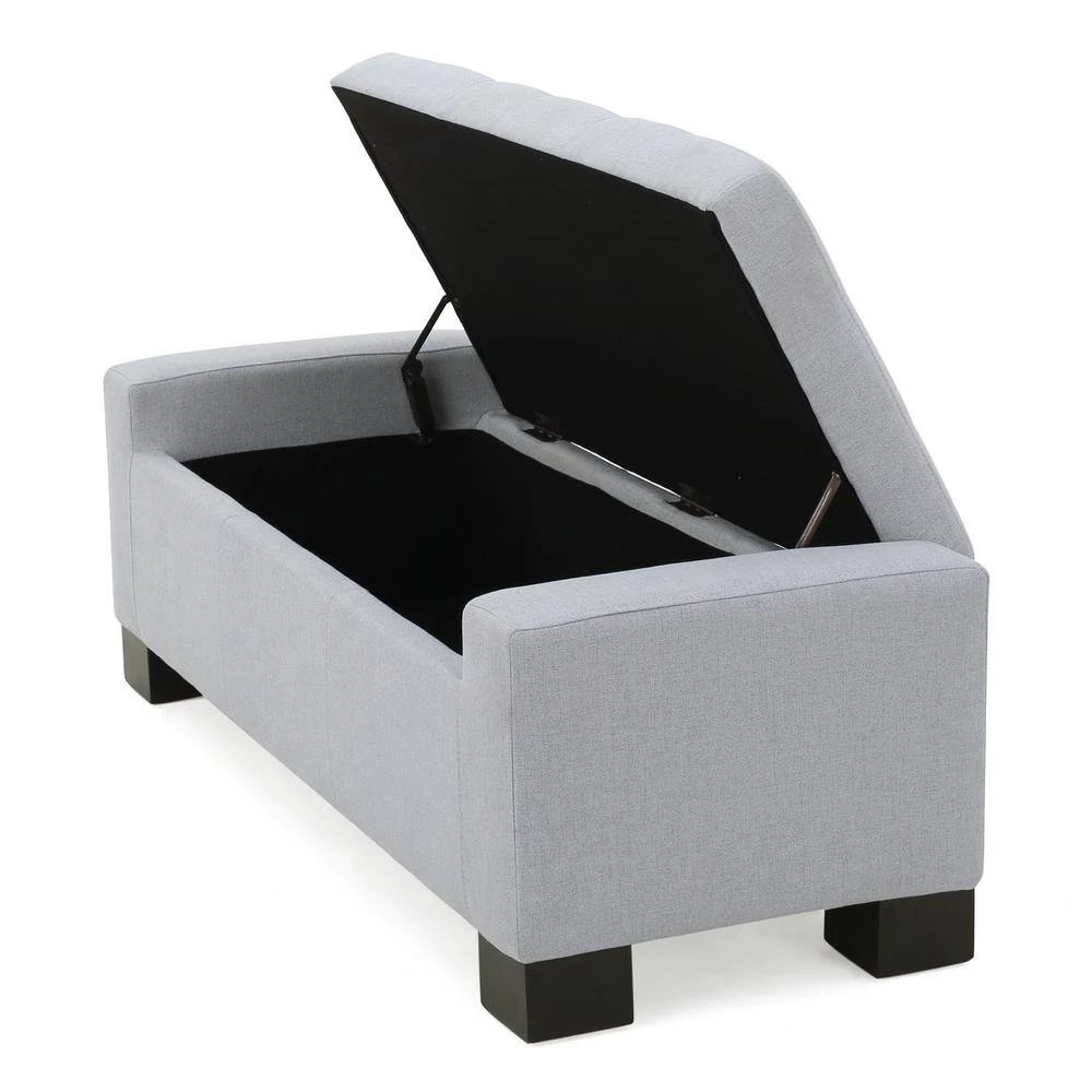 In most living rooms.space for books.magazines.trays and other knick-knacks is coveted and in short supply. That list is just the things that are used often and does not include items that need to be nearby.such as throws.pillows.or even board games for family night. If you find yourself relating to this situation.then help is finally here. This storage ottoman bench is most often used in living rooms.but is also great for the foot of a bed in a master or guest bedroom. Regardless of where you decide is the perfect place for this piece in your home.you will thoroughly enjoy the plentiful storage space that is easy to access (great for those surprise visits when you need to tidy up.).but completely hidden. This entire piece is upholstered with first-class fabric.which makes not only a statement in any room.but also the perfect place to relax tired ft. after a long day.