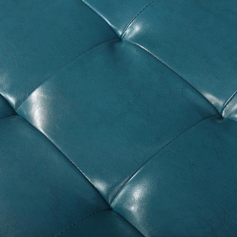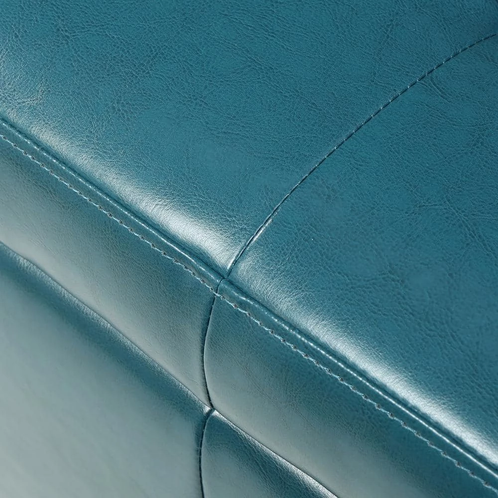 - Teal leather upholstery adds a pop of color to rooms and spaces