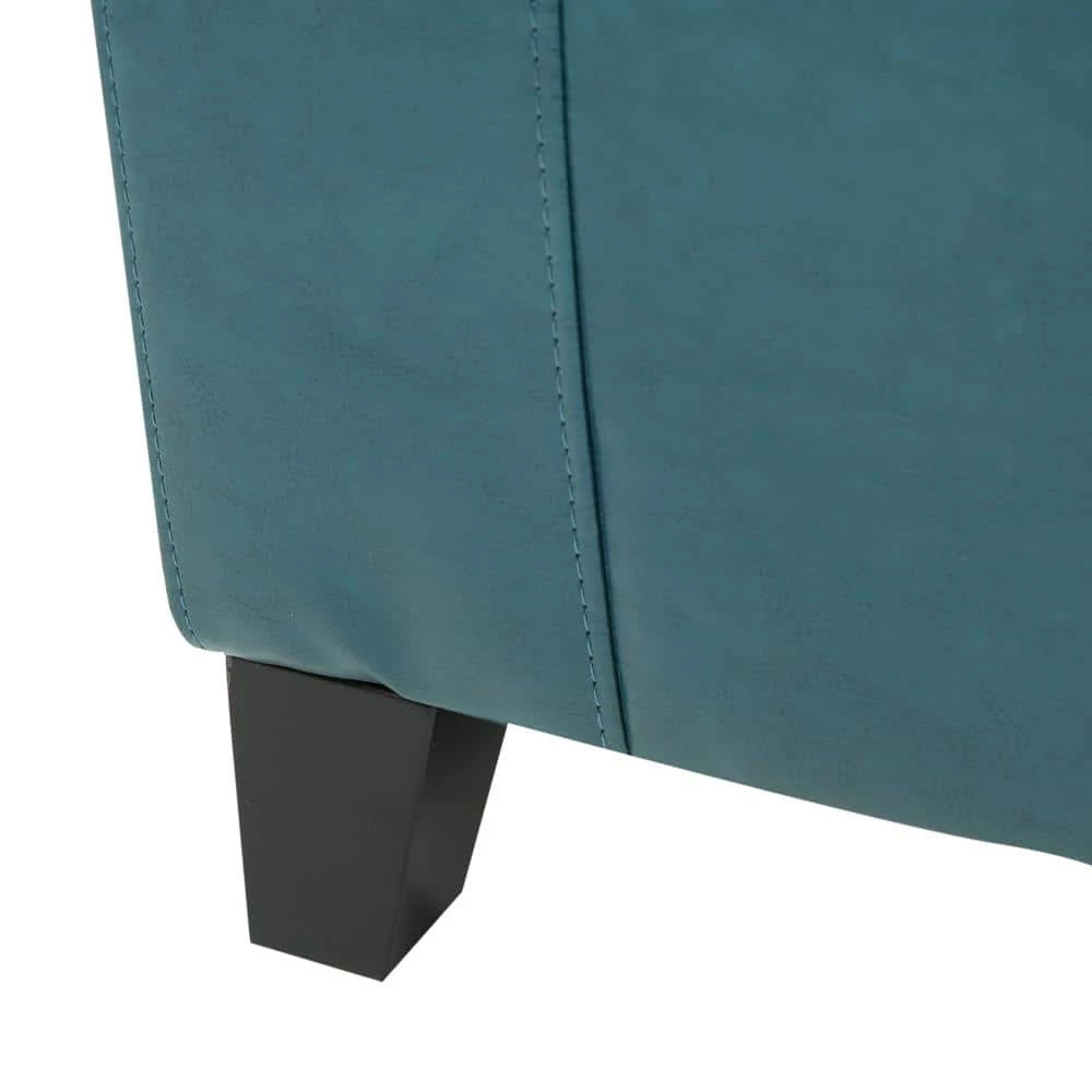 Organize all of the extra remotes, controllers and board games in the guernsey storage ottoman bench. Flaunting a vibrant teal leather upholstery, this stylish piece will look good against any wall and will hold all of those items you don’t really want to put too far away, but you also don’t want to always look at as they clutter your coffee table. Say no to clutter with the guernsey storage bench.