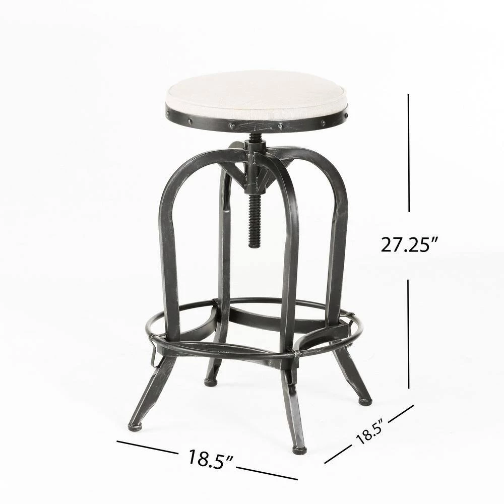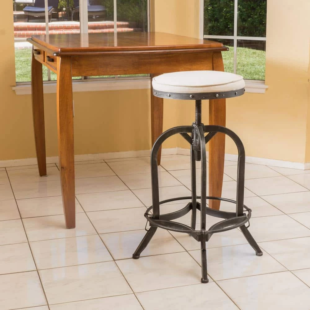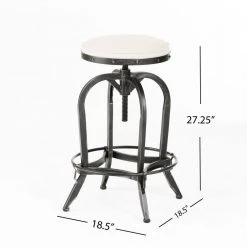 This swivel bar stool is a unique piece with all the elements to fit any urban style decor. Its built from iron material and the tubular base ensures sturdy construction. It features antique-stained legs, and the swivel seat is adjustable.