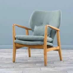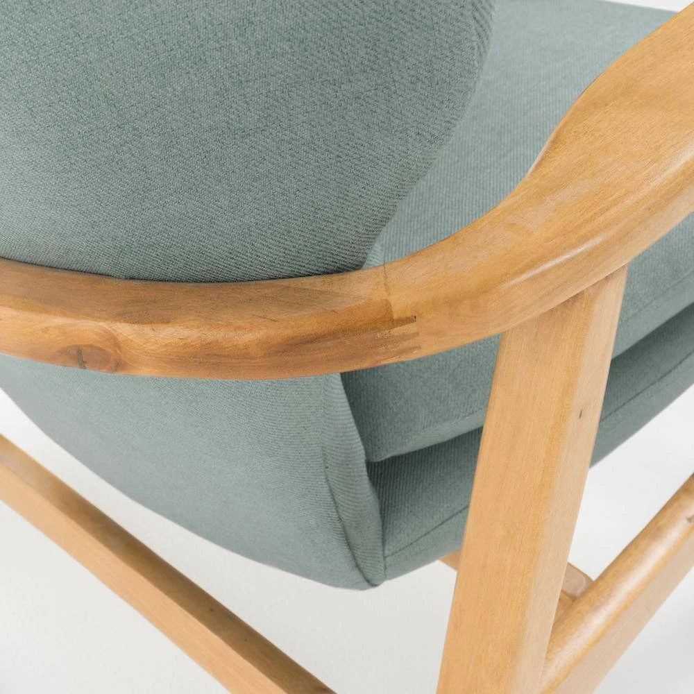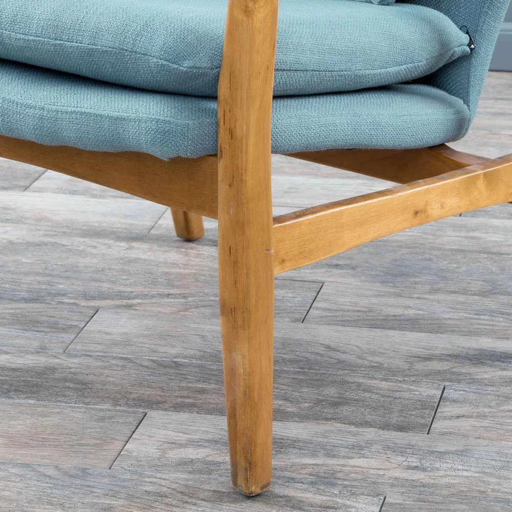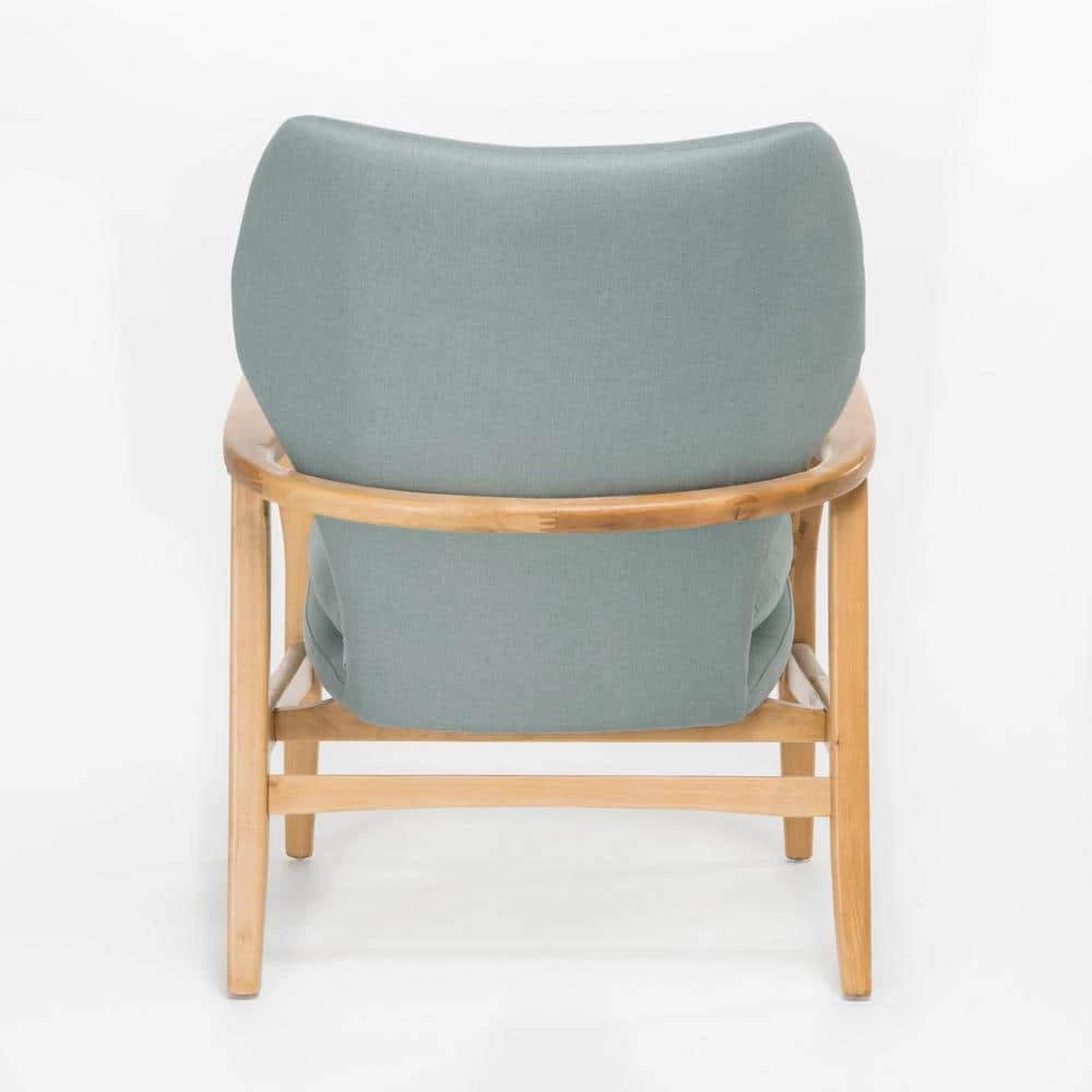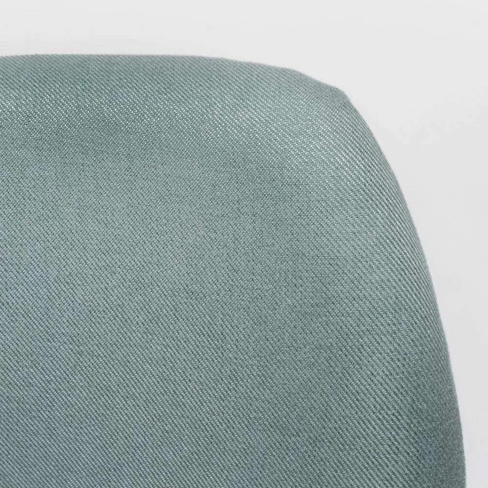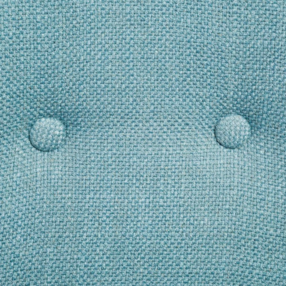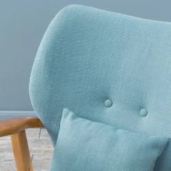 - Light blue fabric upholstery adds a charming and vibrant tone to rooms and spaces