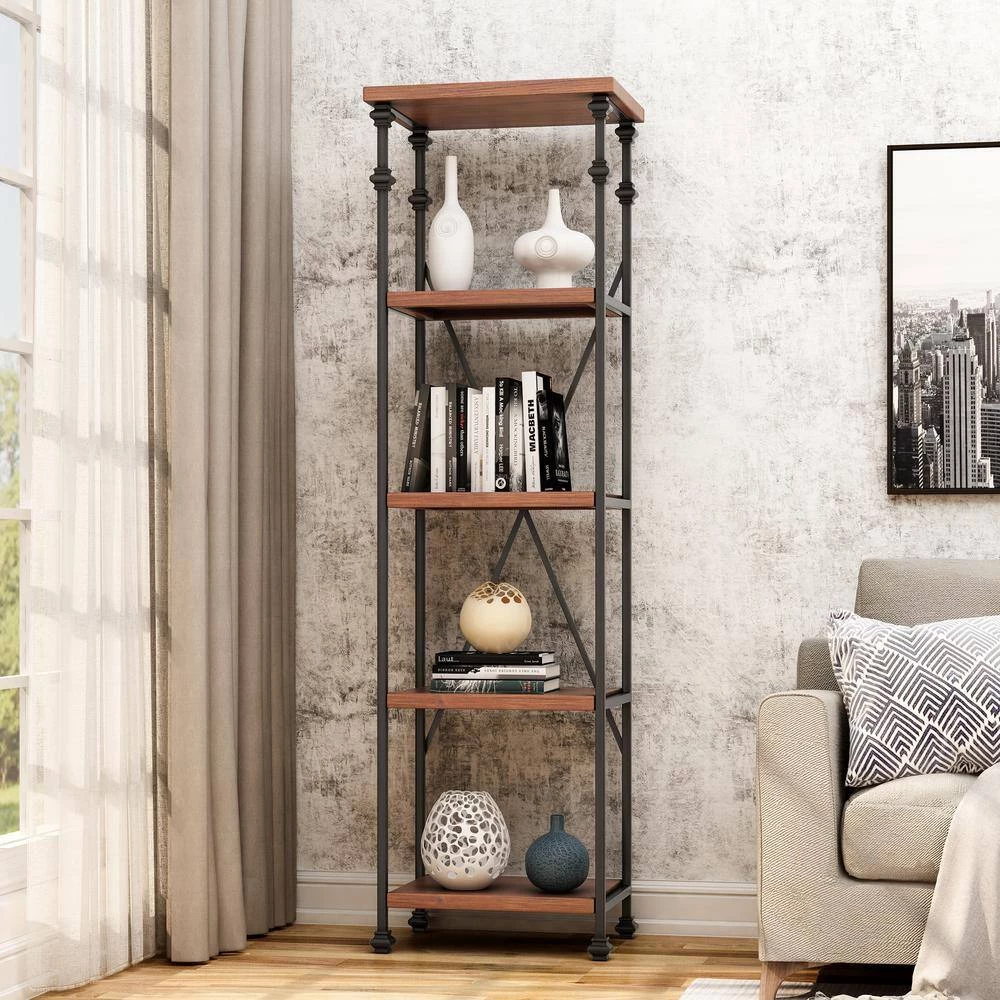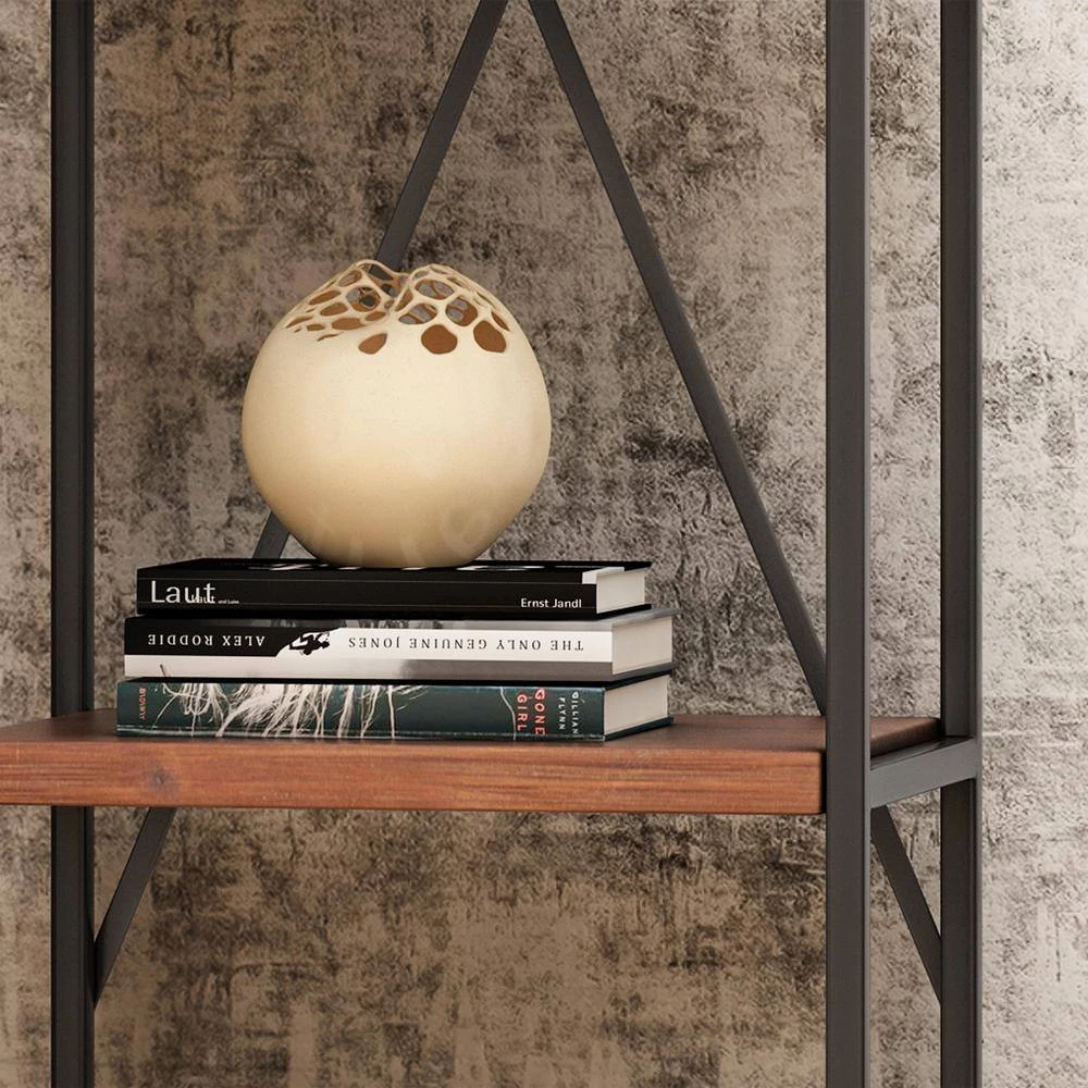 Add an elegant accessory to your home that also provides a convenient display and ample organization space. Featuring an industrial design, our bookcase uses metal piping for an exposed yet stylish look. The metal piping also creates a highly durable structure that is fortified with an X-frame stretcher to ensure the best stability for your home. Finished with fir wood, this piece offers four delightfully natural shelves that provide ample space for display and organization, allowing you to easily personalize your home.