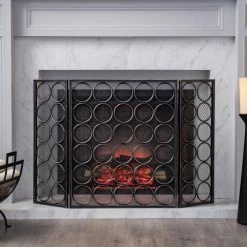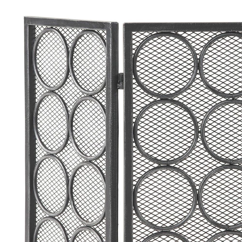 Cozy up next to your fireplace in the company of a loved one with the help of our delightful fireplace screen. This fireplace screen offers a sleek accent to your living room or bedroom while providing protection from hot embers or flying sparks with its fine mesh screen. This three-panel screen is foldable, making this extremely convenient to use. Featuring an upbeat circular pattern across all panels which highlights both functionality and style to give your home the best of the best.