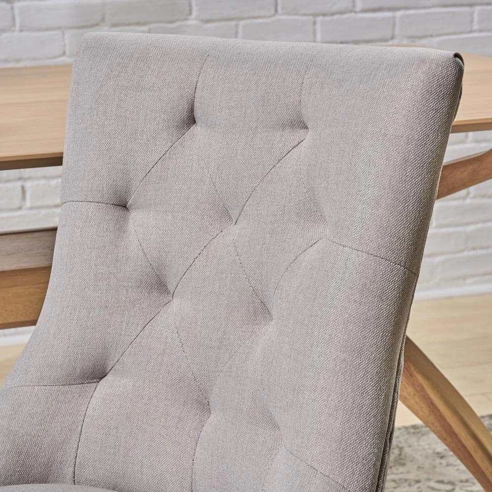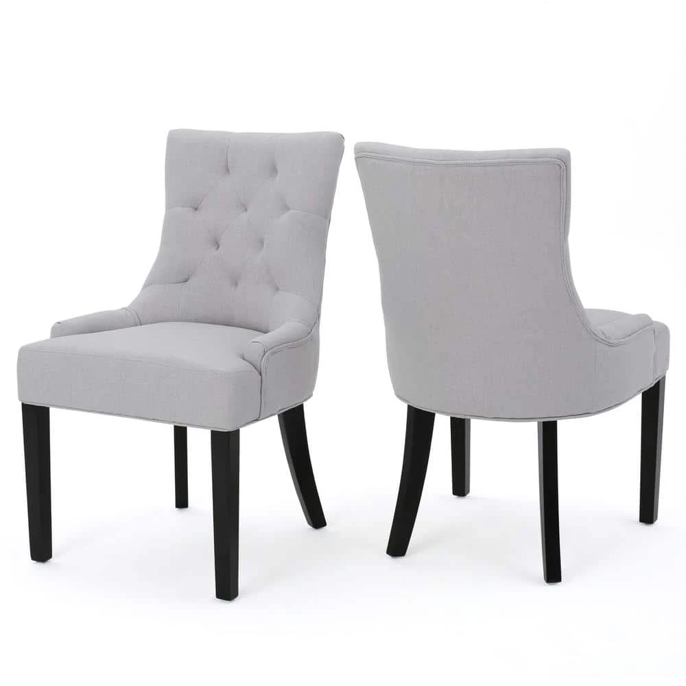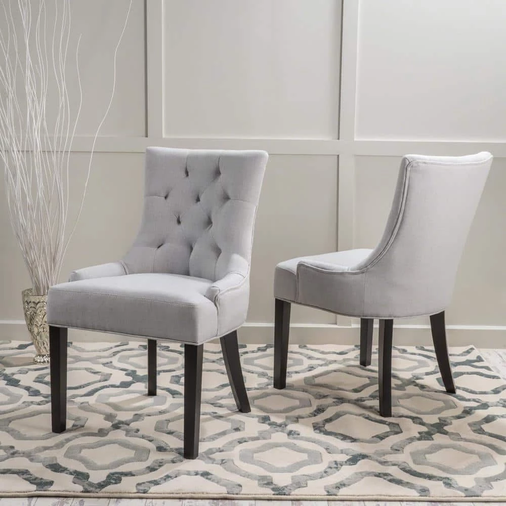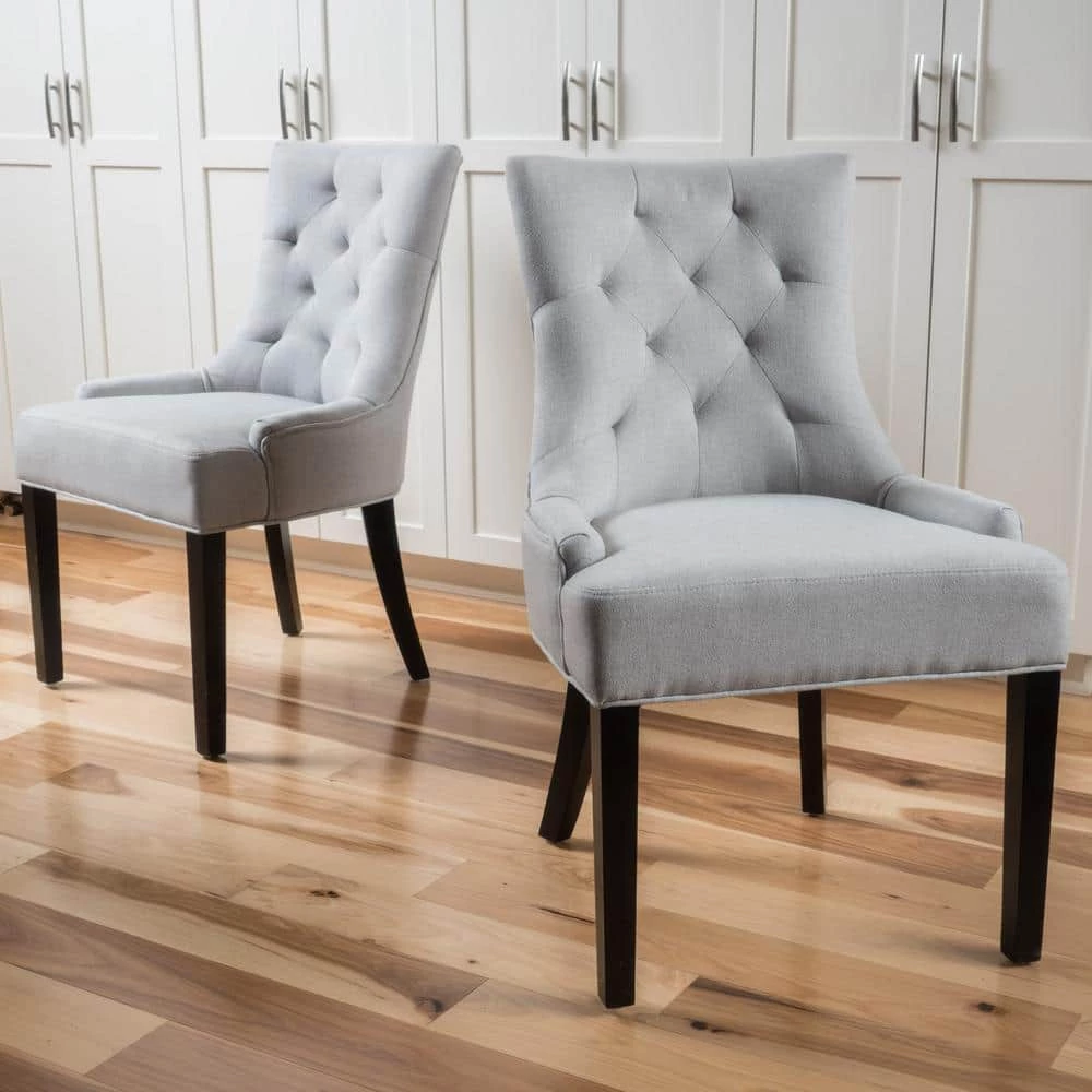 These dining chairs are a great addition to any home. Use them either as dining chairs or as accent chairs. The versitily of the chair is only one of the many features, including its upholstered fabric with diamond tufted backrests that contour the body for added comfort. You will love these dining chairs for years to come.