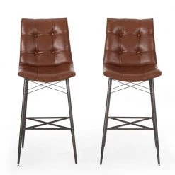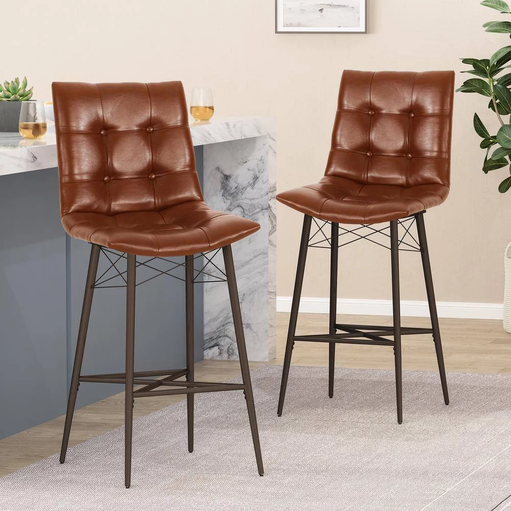 Effortlessly transform your interior space with a classy modern charm that will bring your decor a refined atmosphere. Our barstool set is both classy and edgy with its button tufting, waffle stitching, and iconic Eiffel-inspired silhouette base, enhancing the chic atmosphere that surrounds it. With smooth, upholstered seating and toothpick legs, these stools not only offer an understated contemporary design but also outstanding durability. With a breath of comfort and impressive design, these barstools provide assuring durability to any kitchen counter.