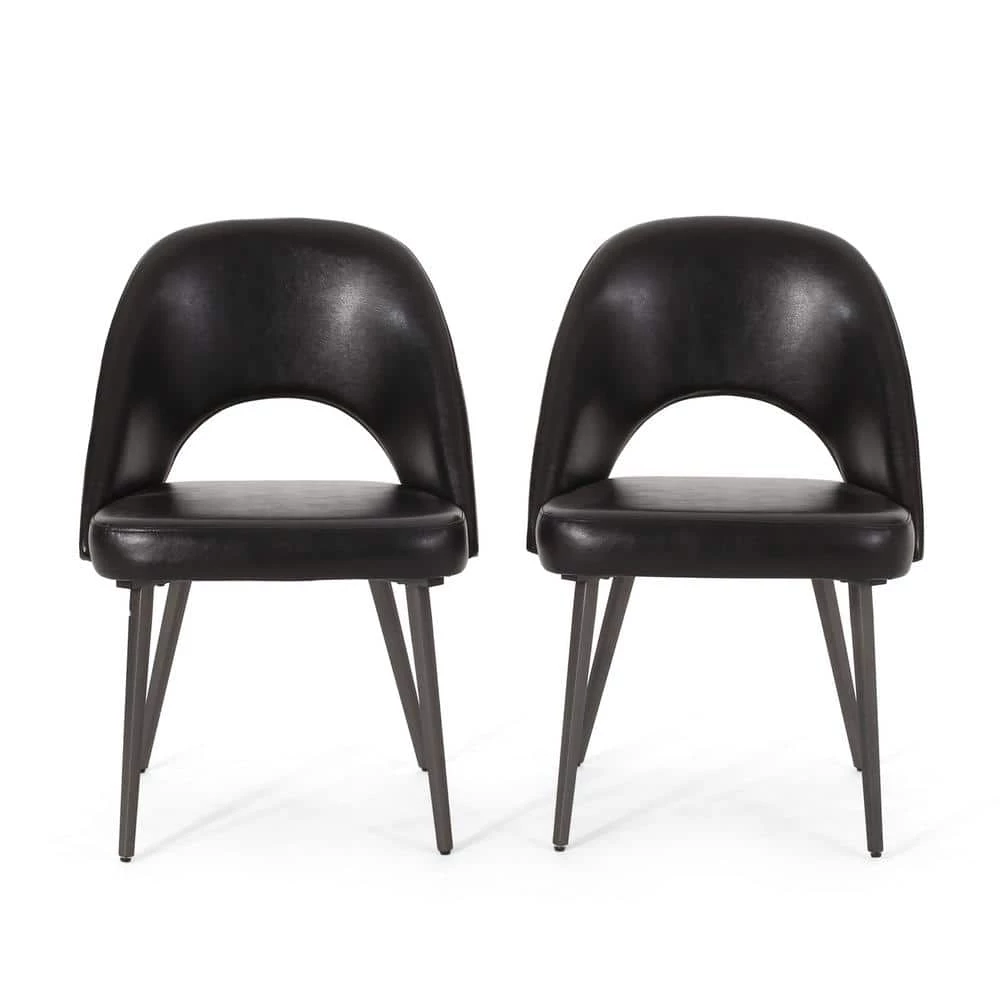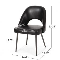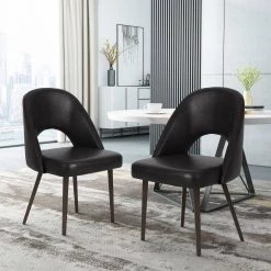 Invite sophistication and careful style to your next meal. Our dining chairs are both classy and elegant with their clean features and open back design, enhancing the chic atmosphere that surrounds them. With smooth, upholstered seating and tapered legs, these chairs not only offer an understated contemporary design but also outstanding durability. This set will complement a number of dining table styles that gives any home a breath of comfort and impressive design, making it easy to host any dinner party or family get-together.