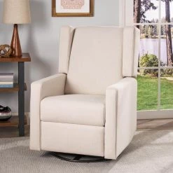 Every household needs seating that will cradle you with sweet comfort. Our charming recliner chair provides an incredibly high degree of coziness in an attractive package with its smooth upholstery and contemporary atmosphere. Featuring delightfully plush seating and graceful wingback design, this exquisite recliner pairs perfectly with its swivel function, allowing you to enjoy ultimate relaxation with little effort. Whether you are settling back in your living room or nursery, this recliner is sure to become your new favorite spot of leisure.