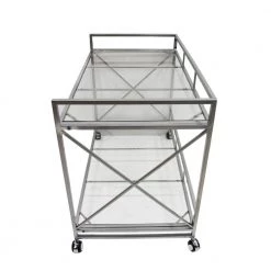 A simple and yet tasteful bar cart, this piece has many uses beyond serving drinks, such as serving as mobile stand. Featuring gorgeous tempered glass and crafted to the highest-quality standards, this will quickly become a welcome member of the family. You’ll enjoy this bar cart for years to come.