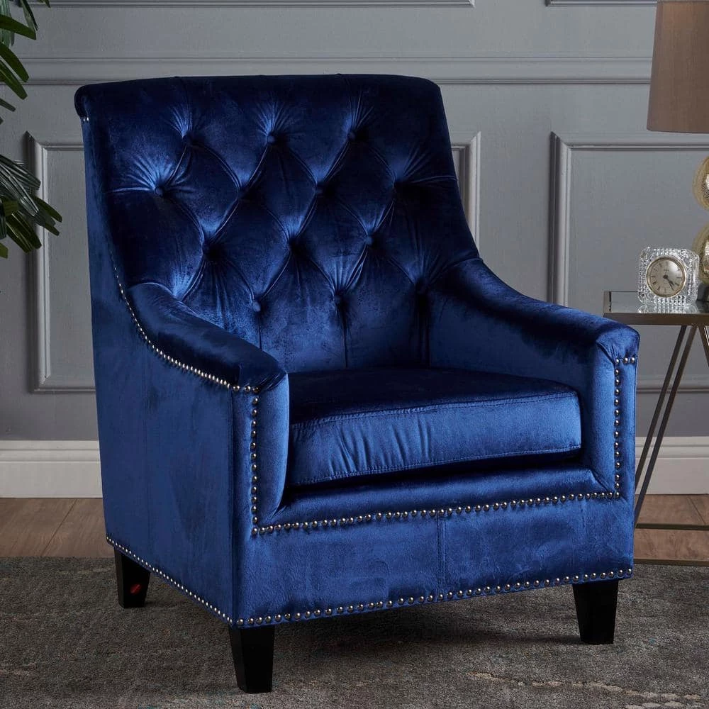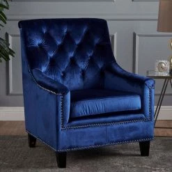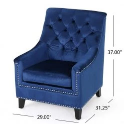 This club chair is a great addition for any home. With its tufted back and studded rim, this chair is a statement in and of itself. The cushioned seat provides extra comfort while seated, and the tufted back allows you to relax against clouds. Overall, this chair is a must have for your home.