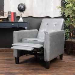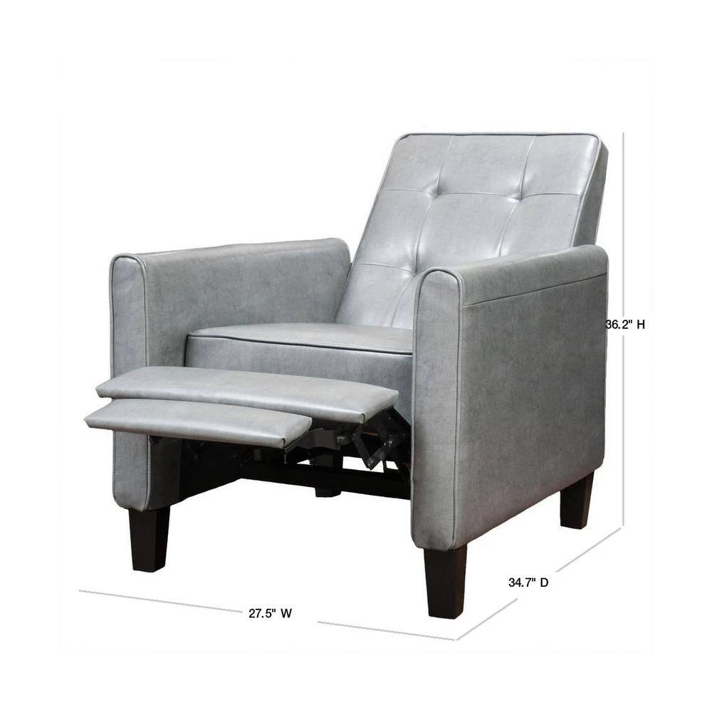 The Jameson recliner allows users to relax in style. Constructed in bonded leather with a tufted back, this comfortable reclining chair is great for small spaces and functions as a great place to take a nap or read a book. This piece will become a part of your family for years to come.
