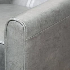 - Gray leather upholstery blends well with any color scheme