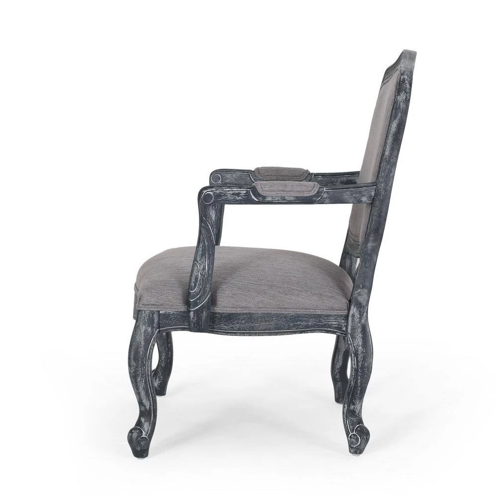Upholstered with grey finished fabric.