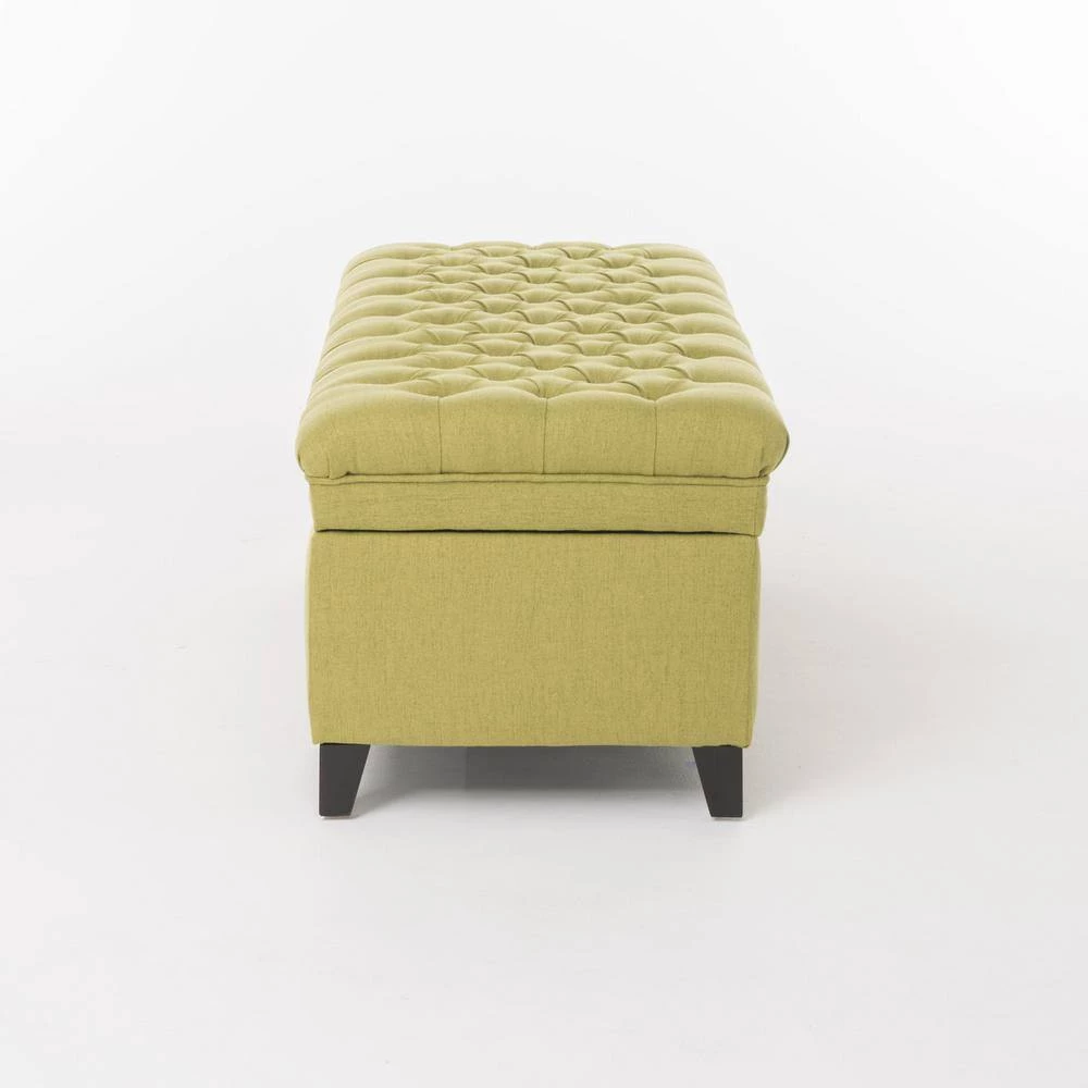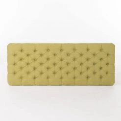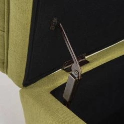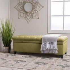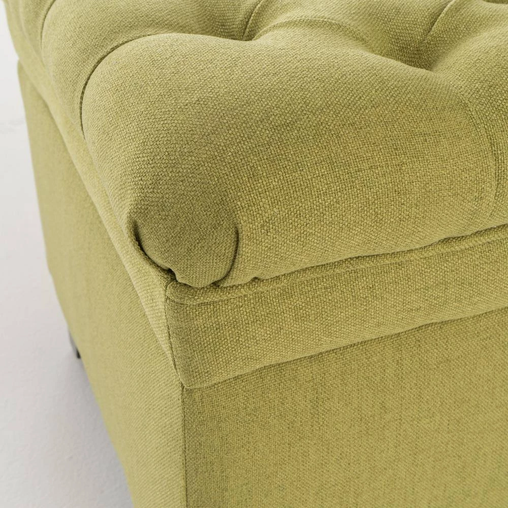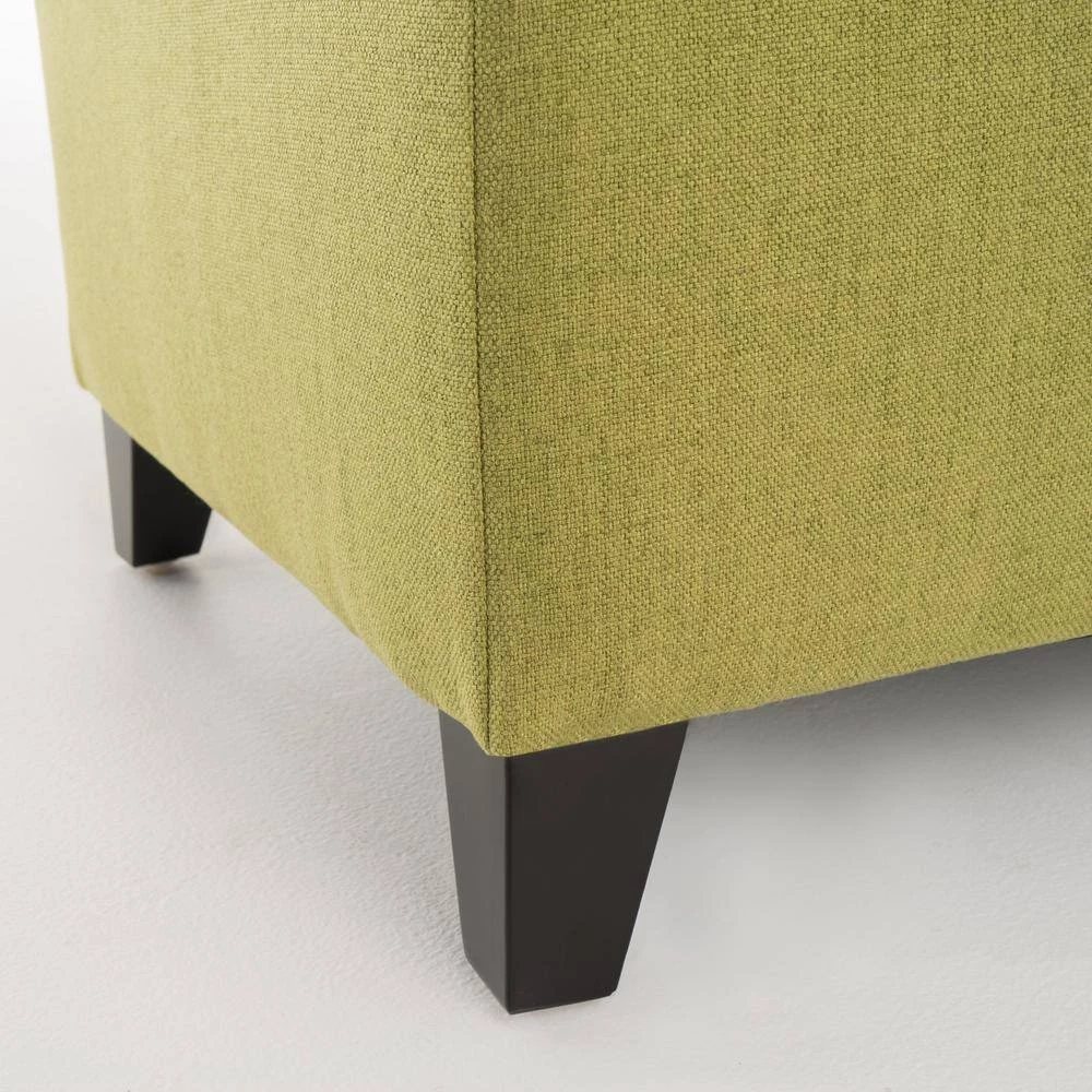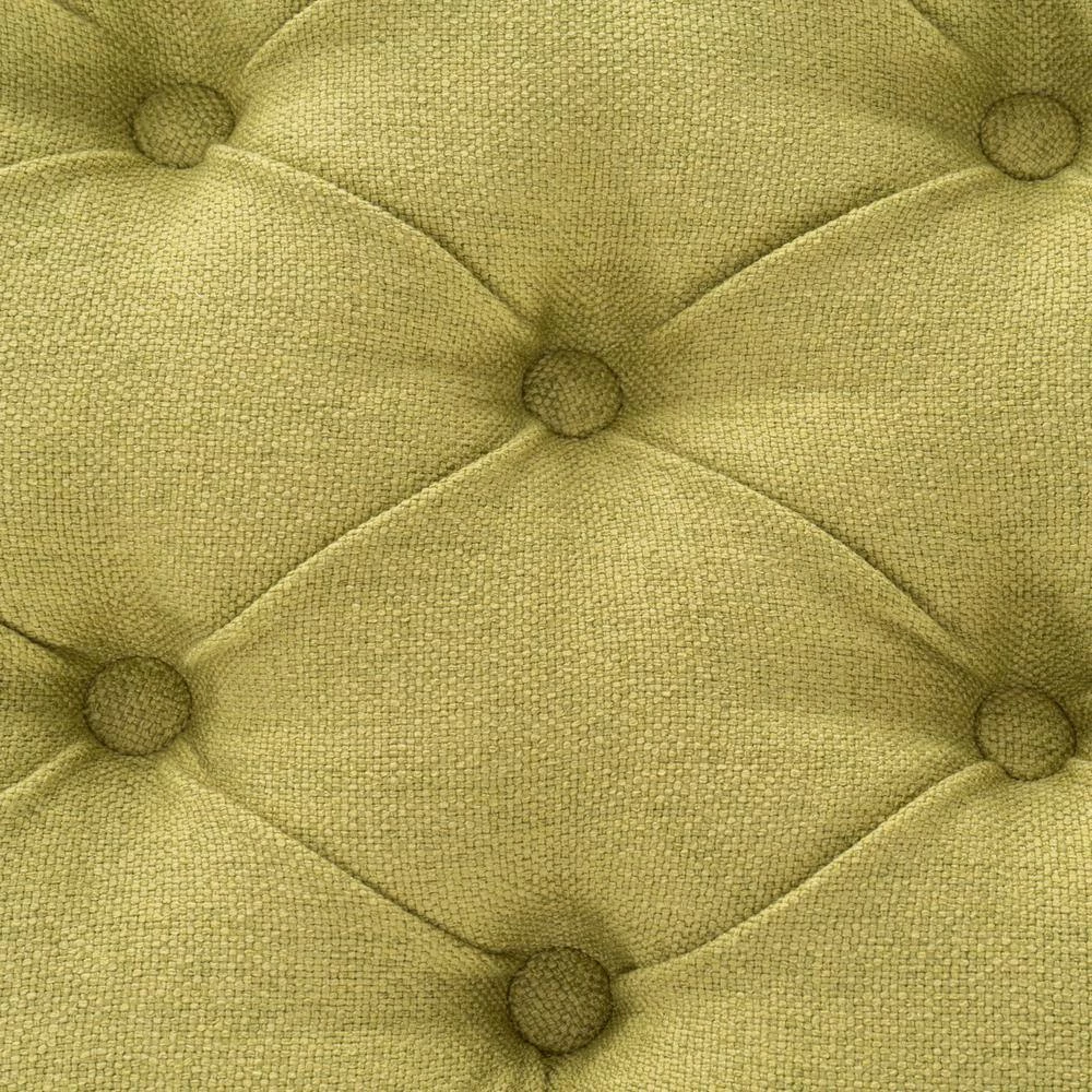 - Green fabric upholstery adds a cool pop of color to rooms and spaces