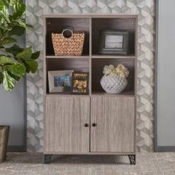 - Has 4 open shelves ideal for displaying decor like figurines, potted plants and framed photos