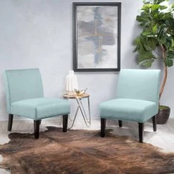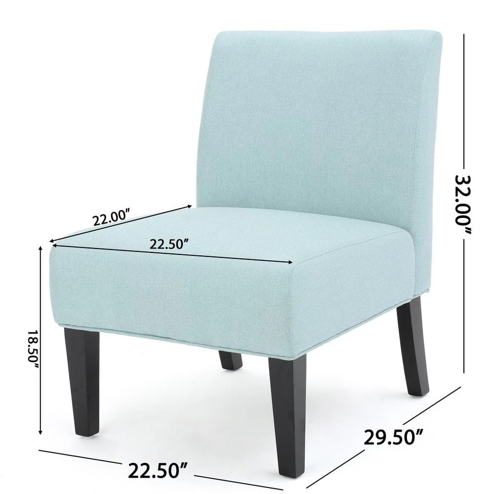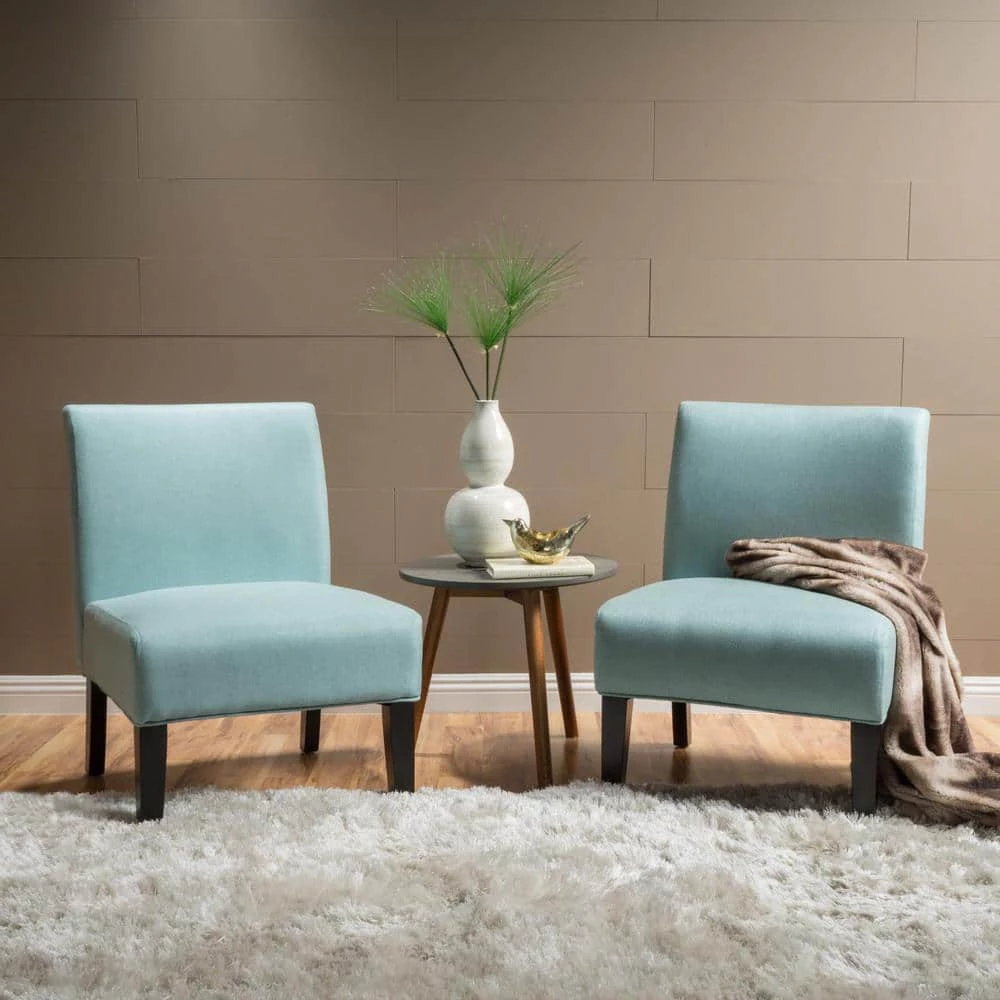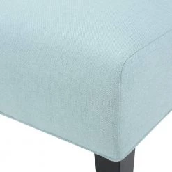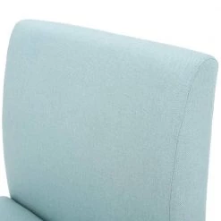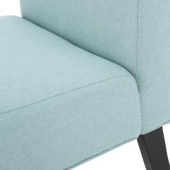 - LIght blue fabric upholstery adds a charming and vibrant tone to rooms and spaces