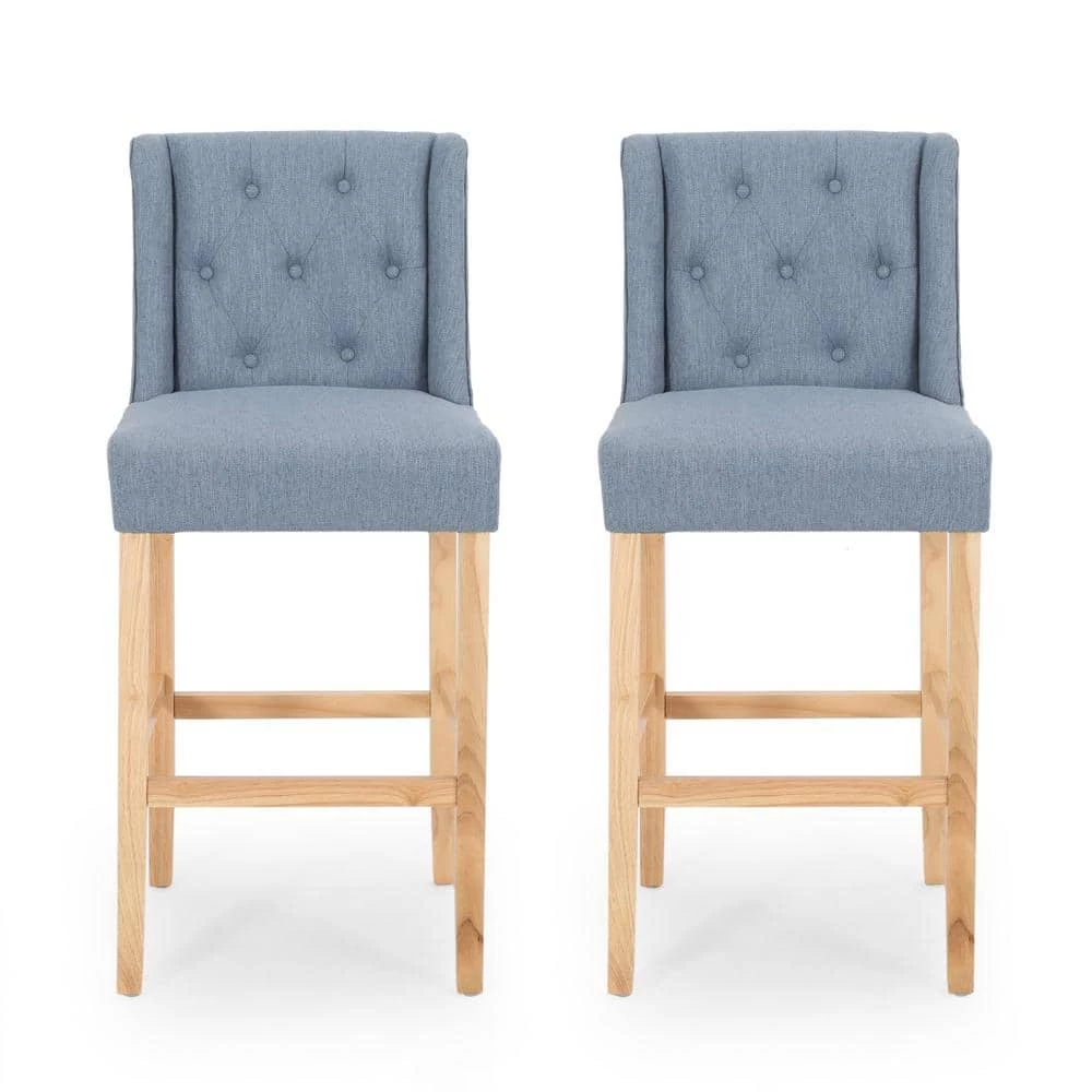 Sit down at your home bar or kitchen counter and enjoy a classy mimosa with your breakfast in the comfort of our bar stool. Featuring a traditional button-tufted backrest with diamond-patterned stitching and a modern wingback design, our bar stool set brings an elegant touch to any interior space. The upholstered seating offers your home effortless comfort and style that emphasizes the stools’ contemporary style. Finished with a solid rubberwood frame, this set of bar stools also provides sturdy durability to any dining space.