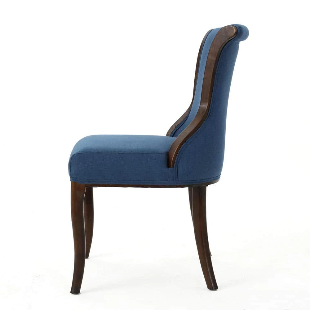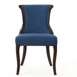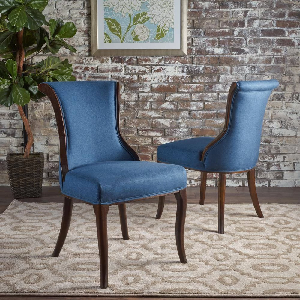These stylish dining chairs are a great addition to any dining room. With their modern curvy design, not only will they add class to your dining room and go with any dining table, but they will impress any guests that you invite over. The smooth fabric of the chair, combined with the padded cushion seats insures equal comfort to style. The curved natural finish of the legs also add that little something extra to give it an air of class, rather than just a plain dining chair.