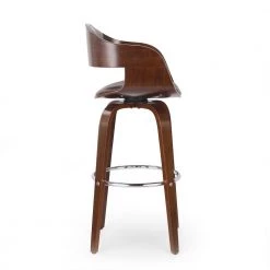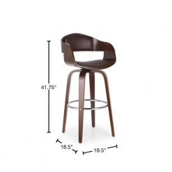Pair your interior space with a seat that will upgrade your decor with effortless grace. With refined wood and delightfully upholstered seating, our barstool creates an exquisite mid-century modern appeal that also brings incredible function to your kitchen nook or home bar. This barstool is complemented by a beautiful bentwood frame, creating a durable structure that ensures stability for you and your guests. Finished with a convenient swivel function and a sleek foot rail, this barstool offers a sophisticated design that enhances the style of any home.