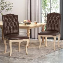 Quickly and easily fill your dining room space with these comfortable yet stylish dining chairs. Our dining chair set offers a sophisticated option for your meals with its luxurious button tufting and smooth upholstery, enhancing the chic atmosphere that surrounds them. Finished with weathered wood cabriole legs, this chair set not only offers a stunning contemporary design but also outstanding durability. Offering a breath of comfort and a touch of style, this dining chair makes it easy to host any dinner party or family get-together.